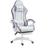 Computer Gaming Chair, PU Leather Desk Chair with Footrest, Swivel Task Chair with 135° Reclining Back and Lumbar Support, PC Chair for Adults, White and Purple