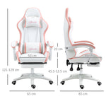Computer Gaming Chair, PU Leather Desk Chair with Footrest, Swivel Task Chair with 135° Reclining Back and Lumbar Support, PC Chair for Adults, White and Pink