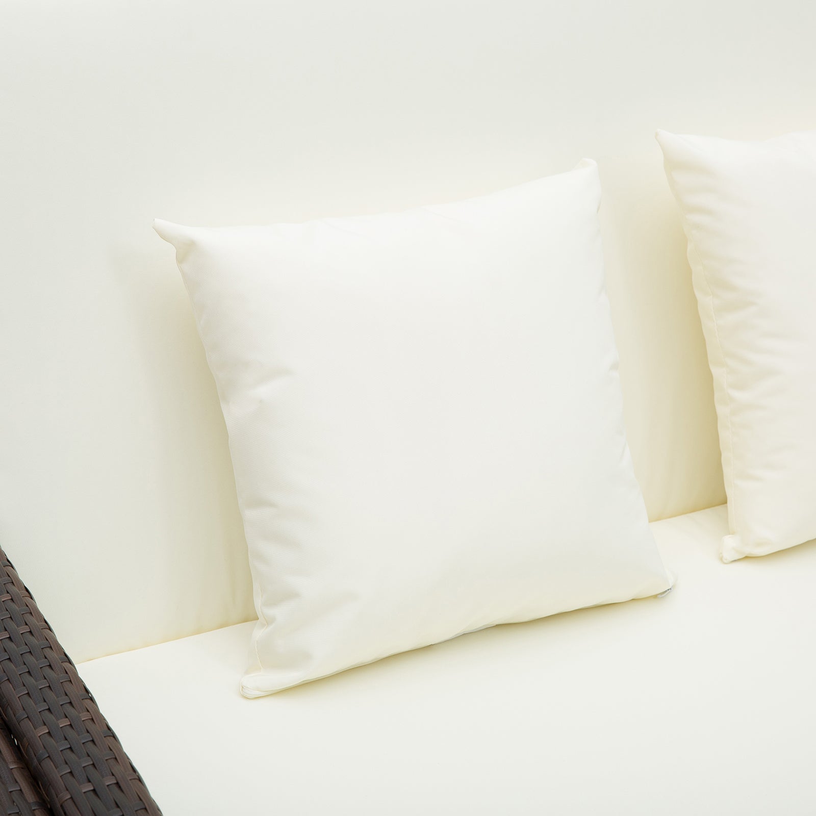 A two-piece garden day bed which can be used together or separately: lie or sit in the sun with this rattan lounger. The two-seater sun bed back is adjustable to different positions; both come with padded cushions - the extra pillows for even more support. Steel frame of the double lounger for strength, wrapped in PE wicker for extra durability and wear for the rattan day bed. The outdoor day bed is completed with hinged sides which act as a side table.