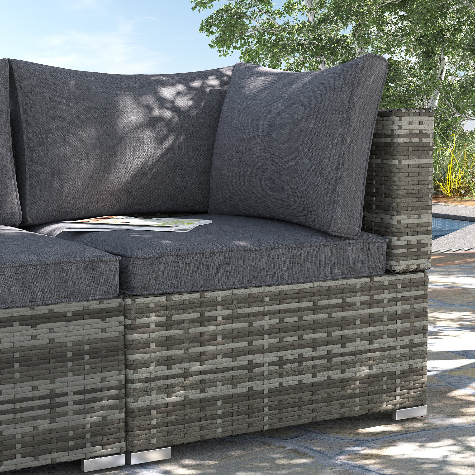 Outdoor PE Rattan Corner Sofa, Garden Wicker Furniture Single Sofa Chair w/ Cushions, Deep Grey