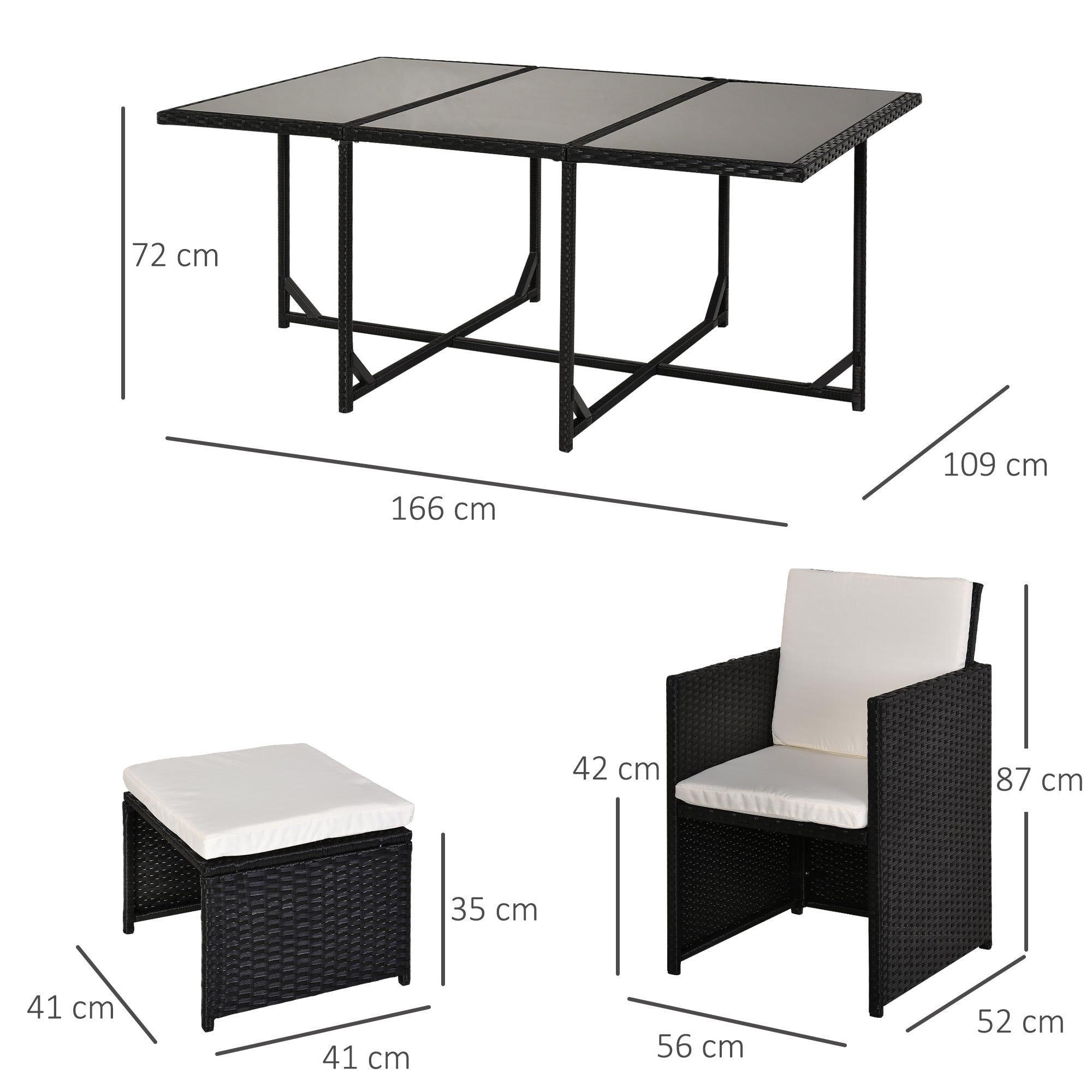 Rattan Dining Set Garden Furniture Patio set 11 PC with Cushion Black /Milk White