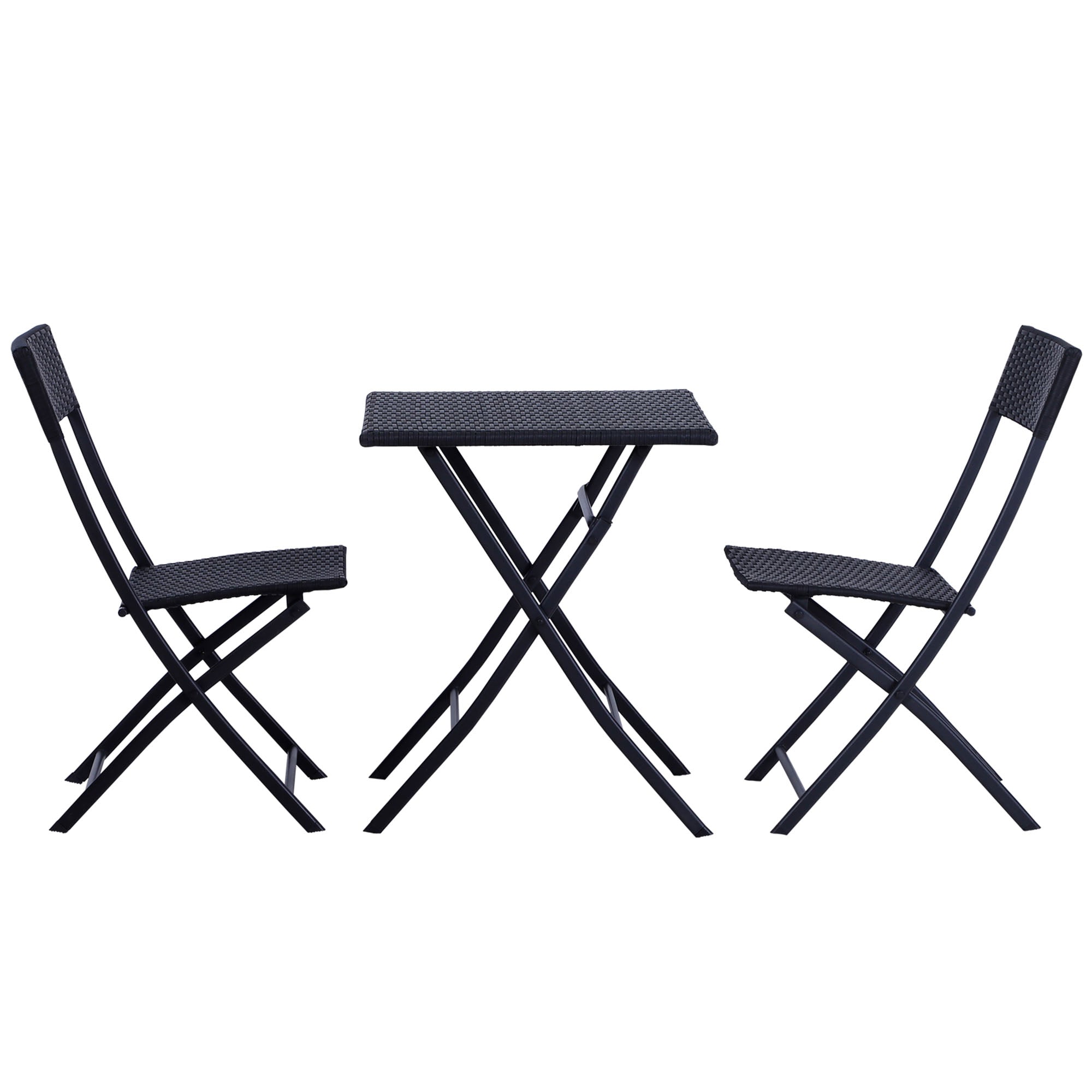 This 3 piece rattan bistro coffee set is a great solution for your garden, patio or balcony. Made with high quality metal tubing and covered with PE rattan, it will last for years to come. The set consists of 1 table and 2 chairs, a great addition to any home. The whole set can be easily be folded and stored away to create space when not in use, this set is not just useful but practical.