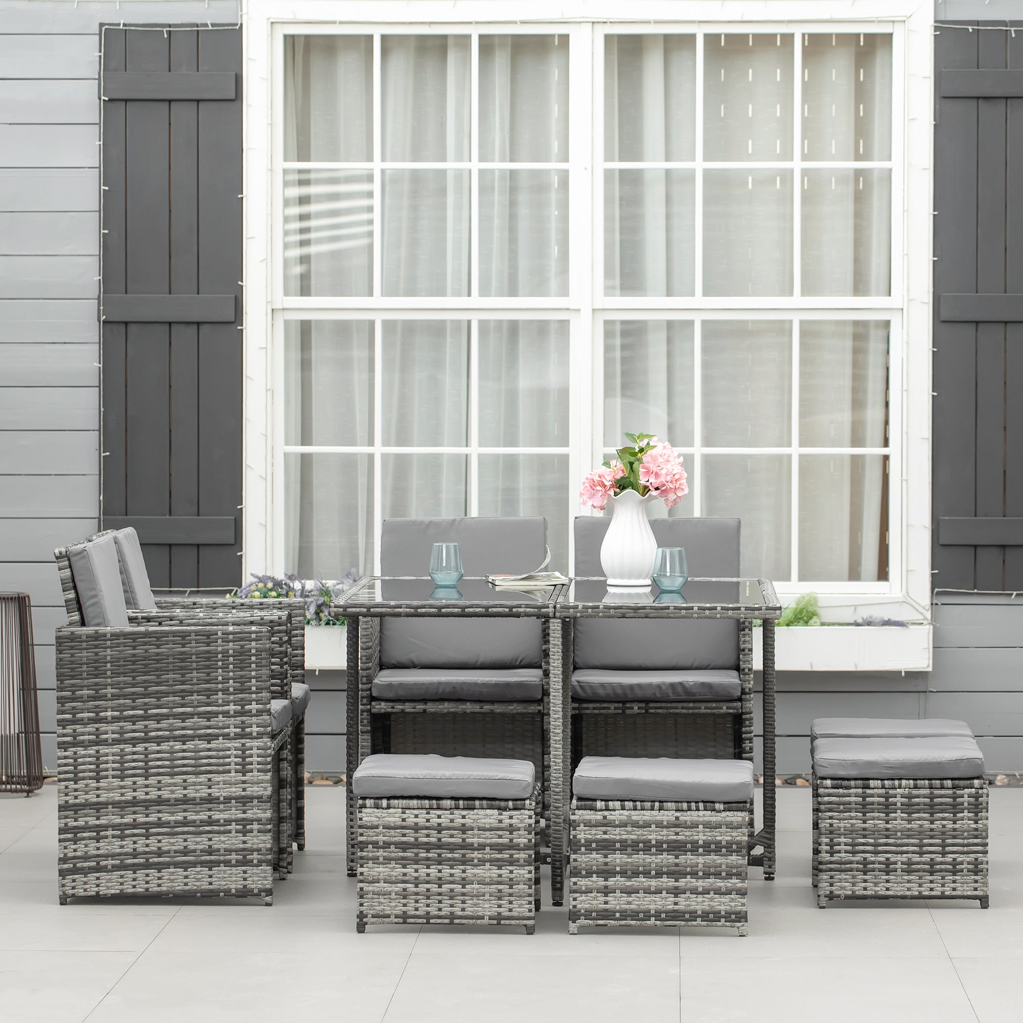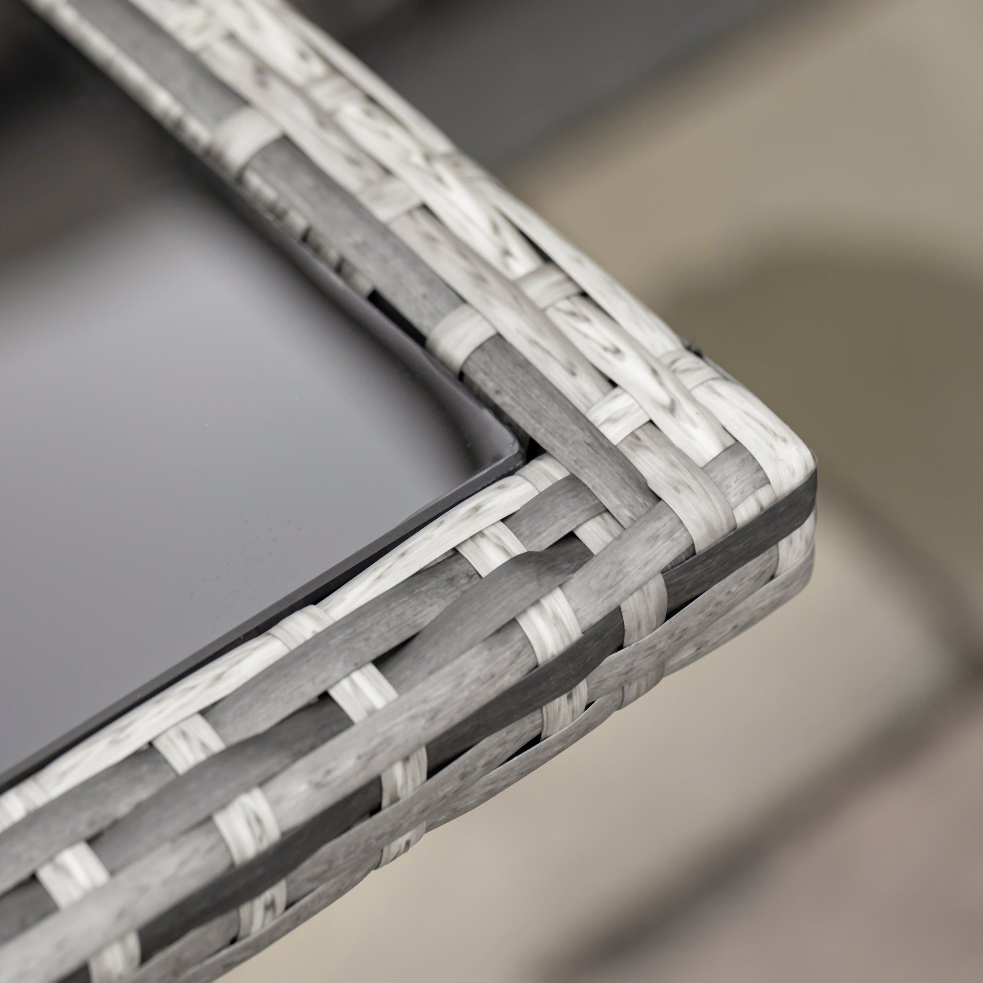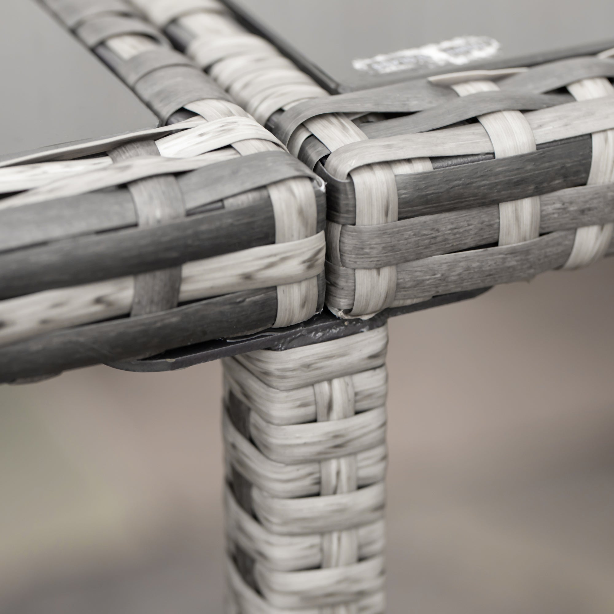 This rattan garden set is a stylish and durable piece, made to make your days outside as comfortable as possible. The frames, made from metal ensure a tough structure - with the PE wicker rattan around it giving extra protection and durability. All seats come with a padded cushion for comfort. The table's top is made from tempered glass, a safe, solid surface which is also beautiful. It's time to enjoy your outdoor garden, anytime, once again.