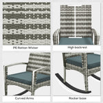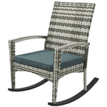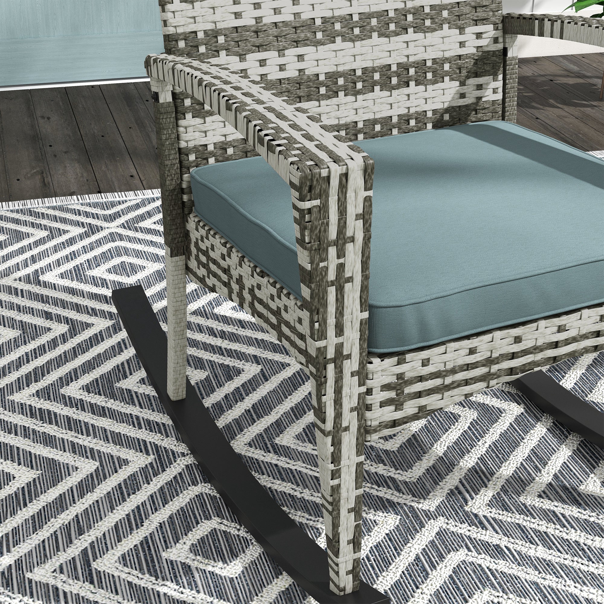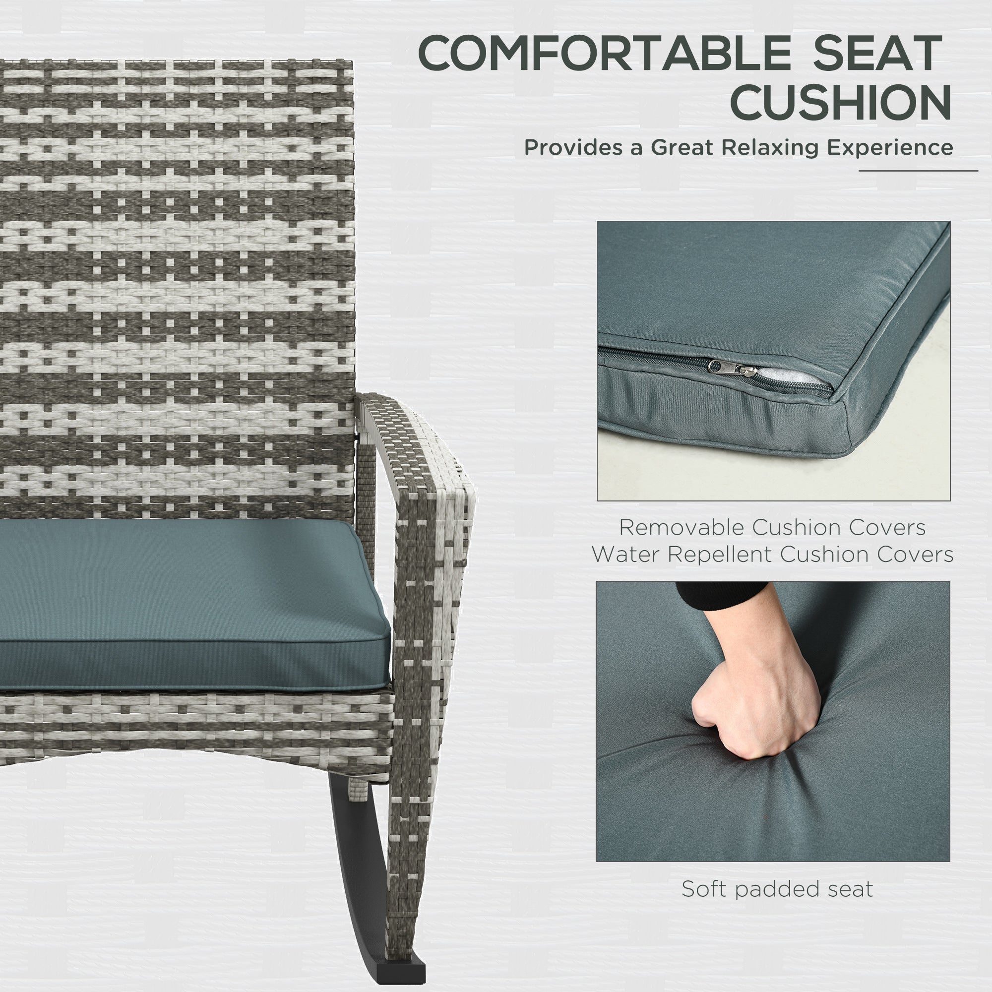 PE Rattan Garden Rocking Chair, Outdoor Rocking with Cushion, 160 KG Capacity Wicker Garden Armchair Rocker with Metal Frame for Patio, Porch, Balcony, Light Grey