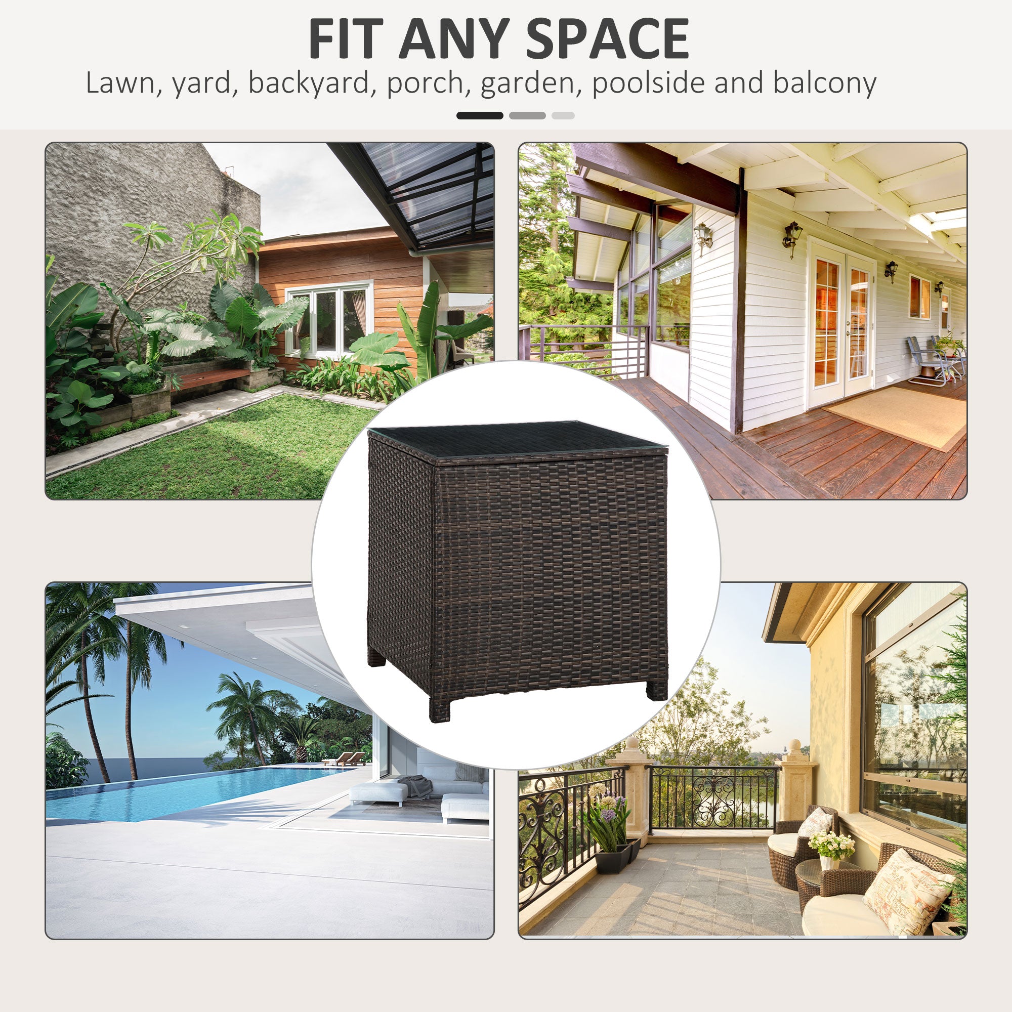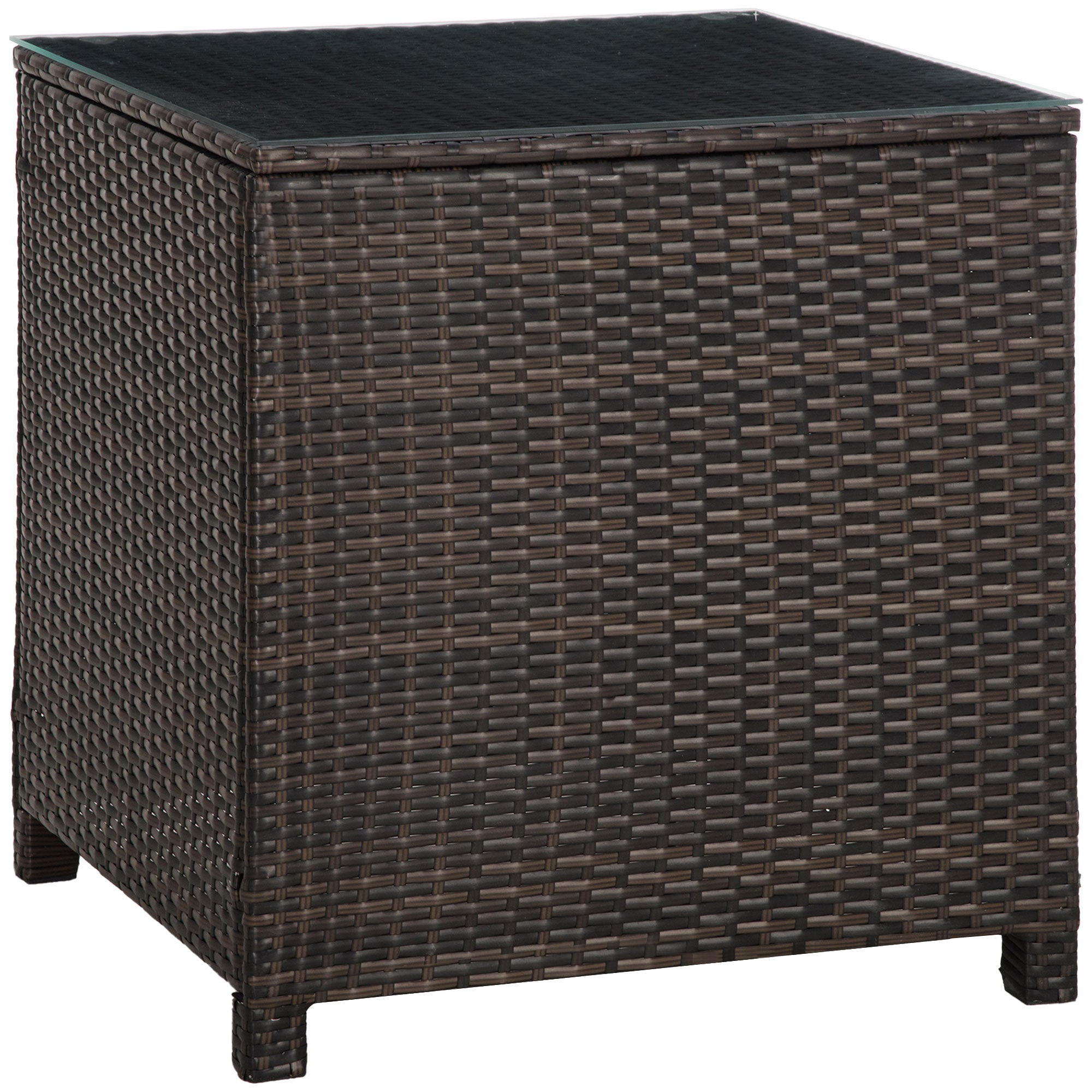 Rattan Garden Furniture Side Table Patio Frame Tempered Glass New - Brown