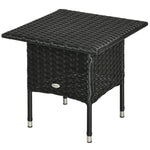 Rattan Side Table, Outdoor Coffee Table with Plastic Board Under the Full Woven Table Top for Patio, Garden, Balcony, Black