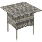 Rattan Side Table, Outdoor Coffee Table with Plastic Board Under the Full Woven Table Top for Patio, Garden, Balcony, Mixed Grey