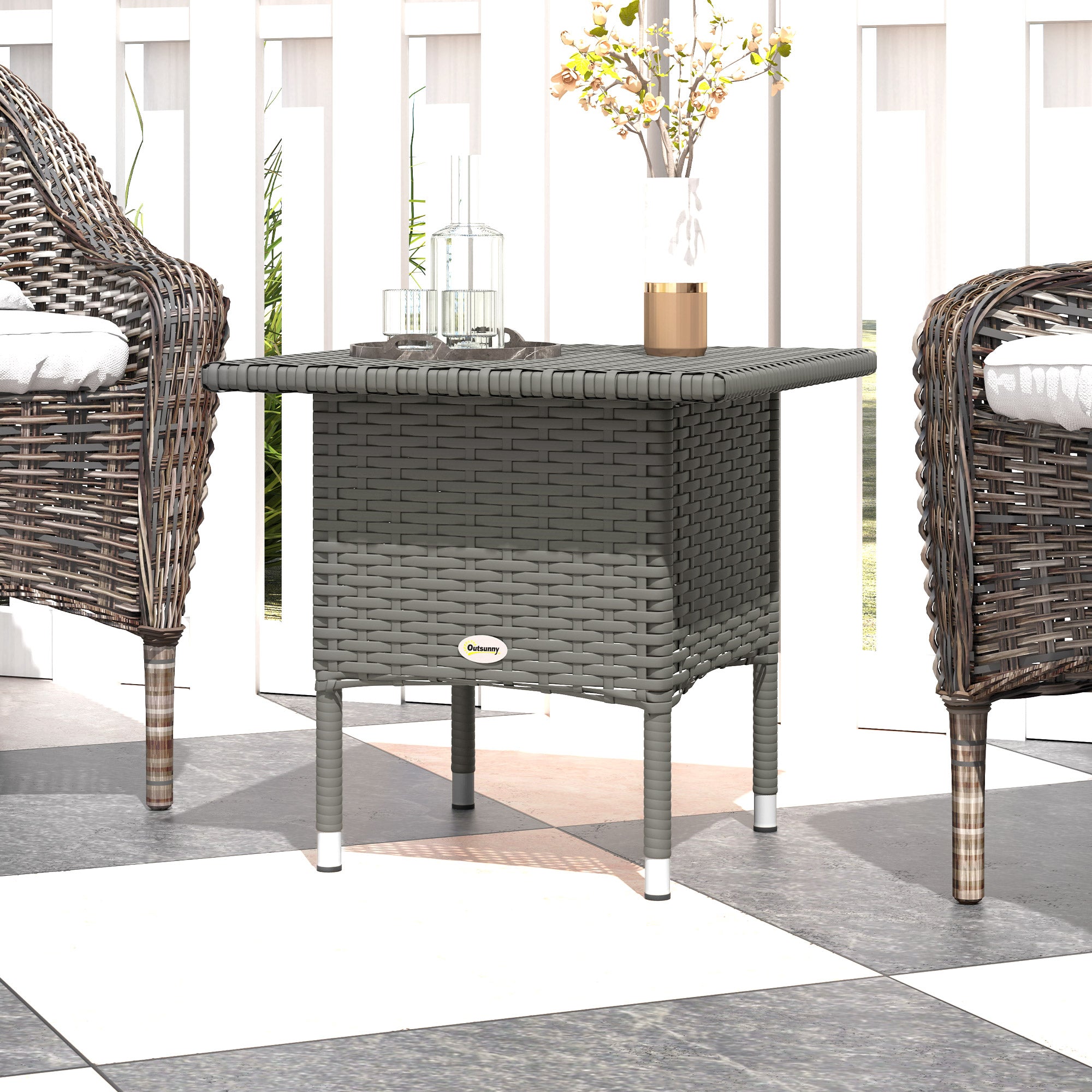 Rattan Side Table, Outdoor Coffee Table with Plastic Board Under the Full Woven Table Top for Patio, Garden, Balcony, Grey