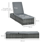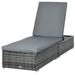 PE Rattan Sun Lounger, Five-level Adjustable Recliner Bed Chair with Soft Padded Cushion for Patio, Garden, Mixed Grey