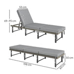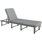Single Folding Rattan Sun Lounger, with Cushion - Grey