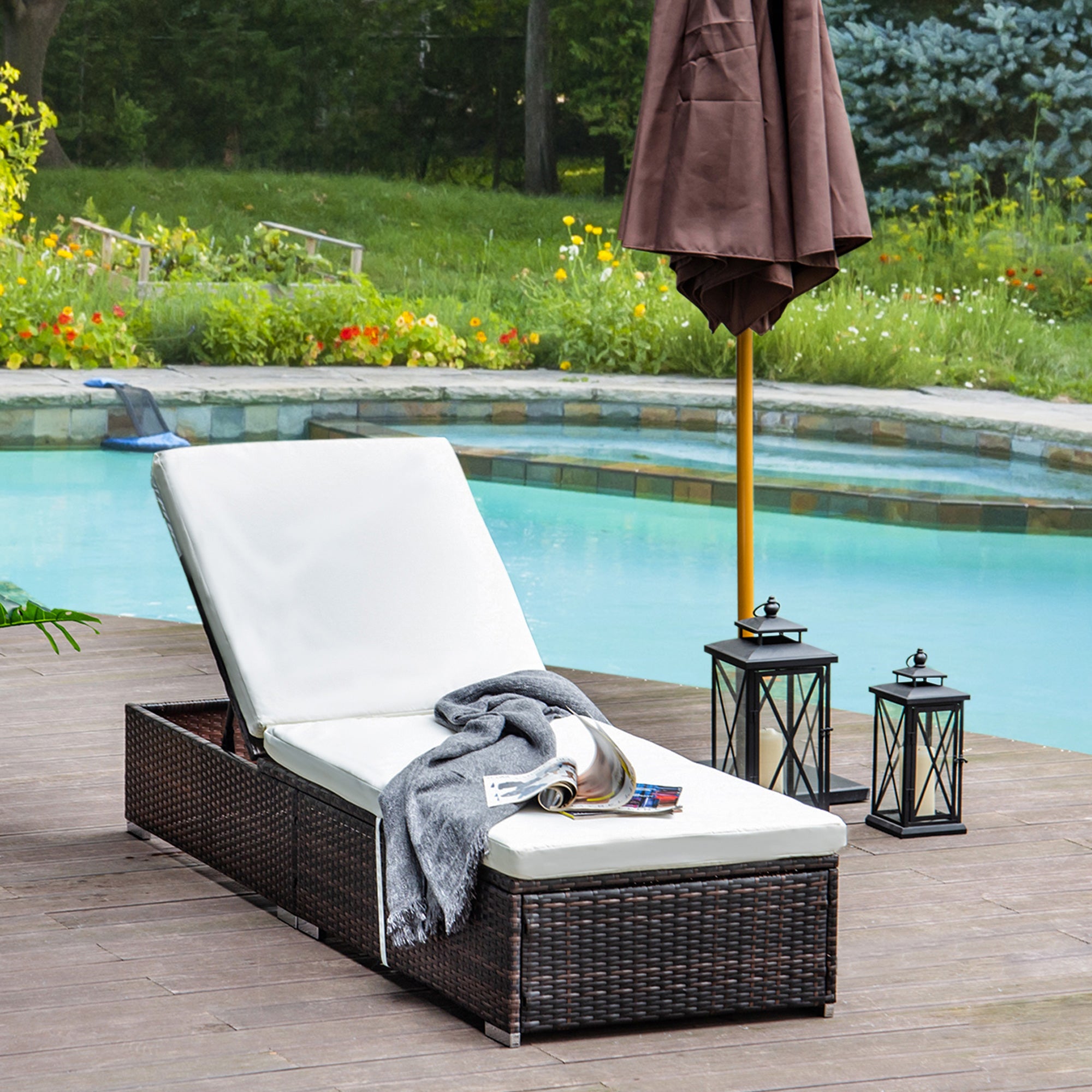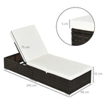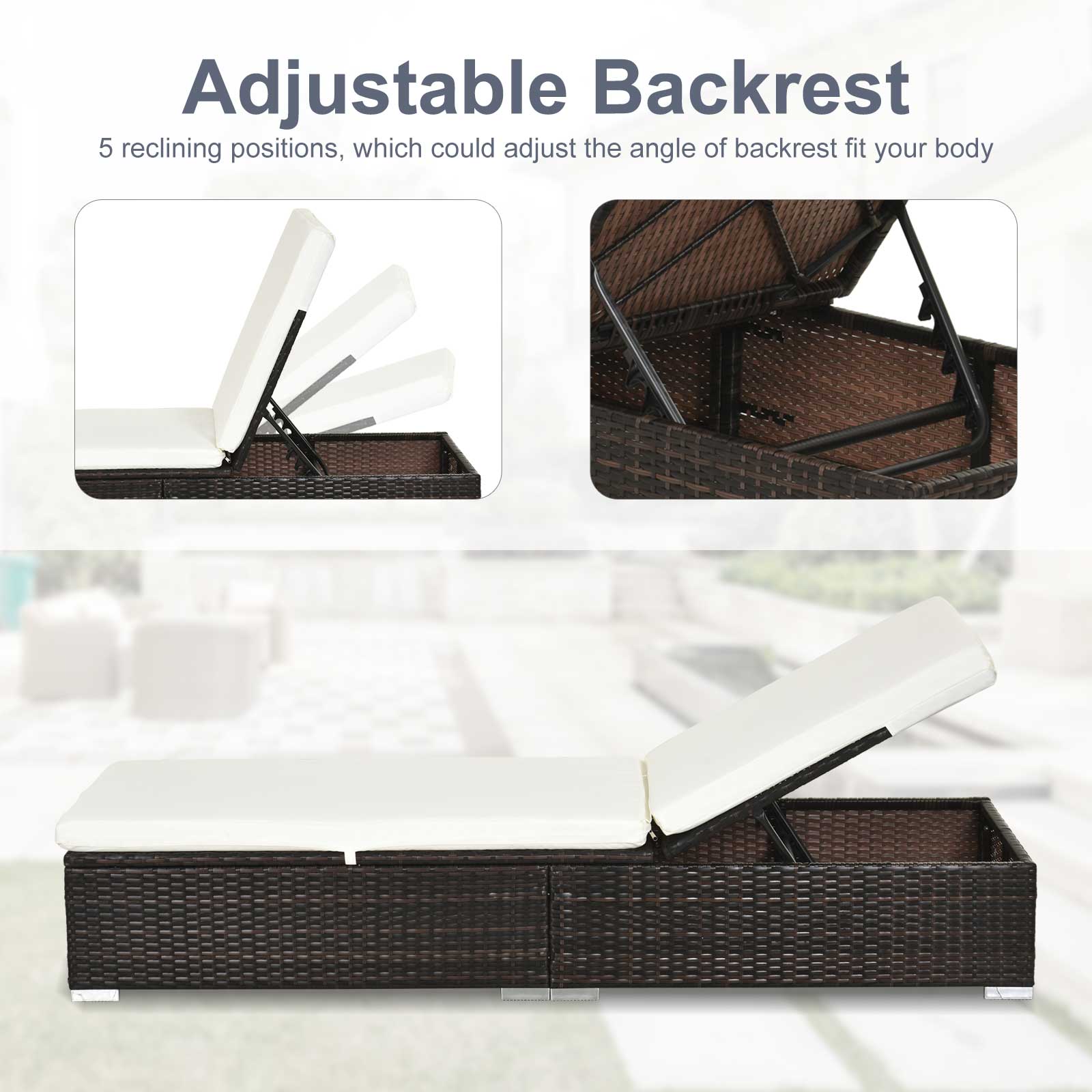 PE Rattan Sun Lounger, Five-level Adjustable Recliner Bed Chair with Soft Padded Cushion for Patio, Garden, Mixed Brown