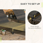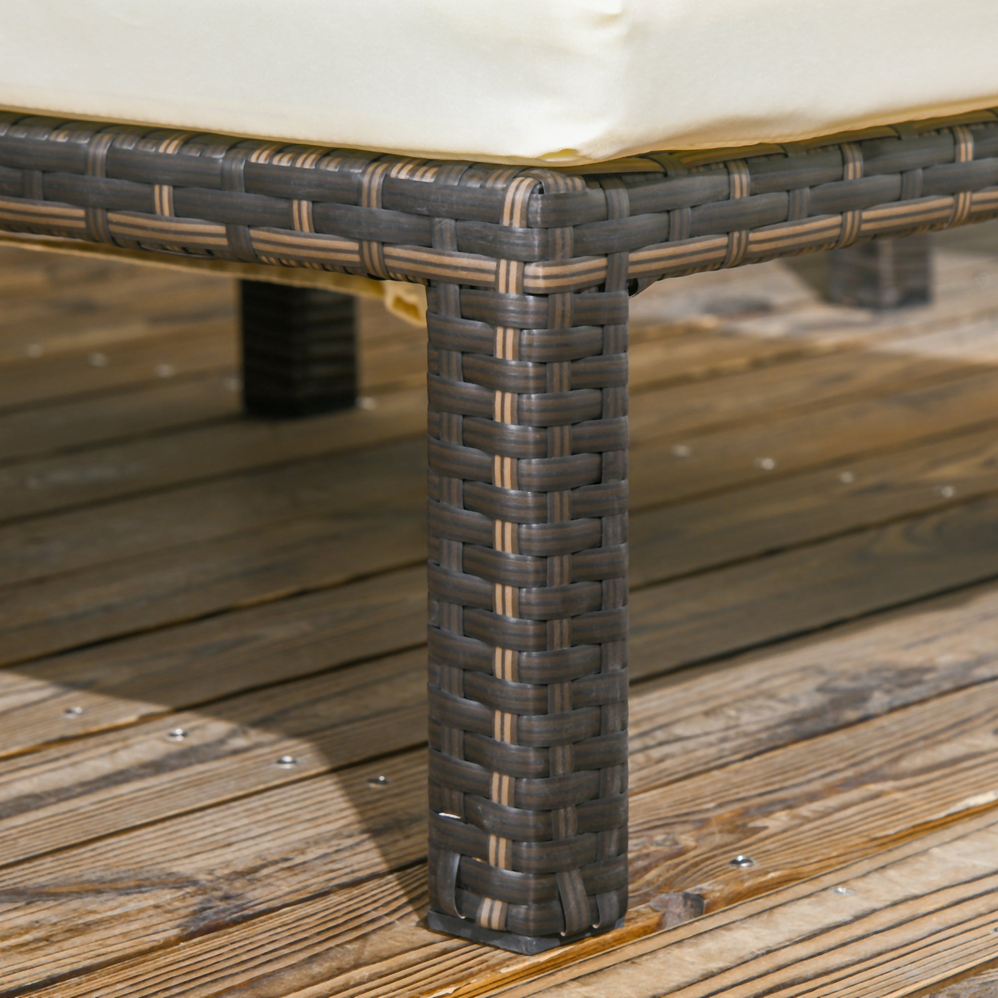 Set of Two Reclining Rattan Sun Loungers, with Cushions - Brown/Cream