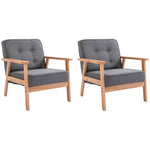 Armchair, Linen Fabric Accent Chair, Occasional Chair with Beech Wood Frame for Living Room, Reception, Bedroom, Balcony, Set of 2, Grey and Natural