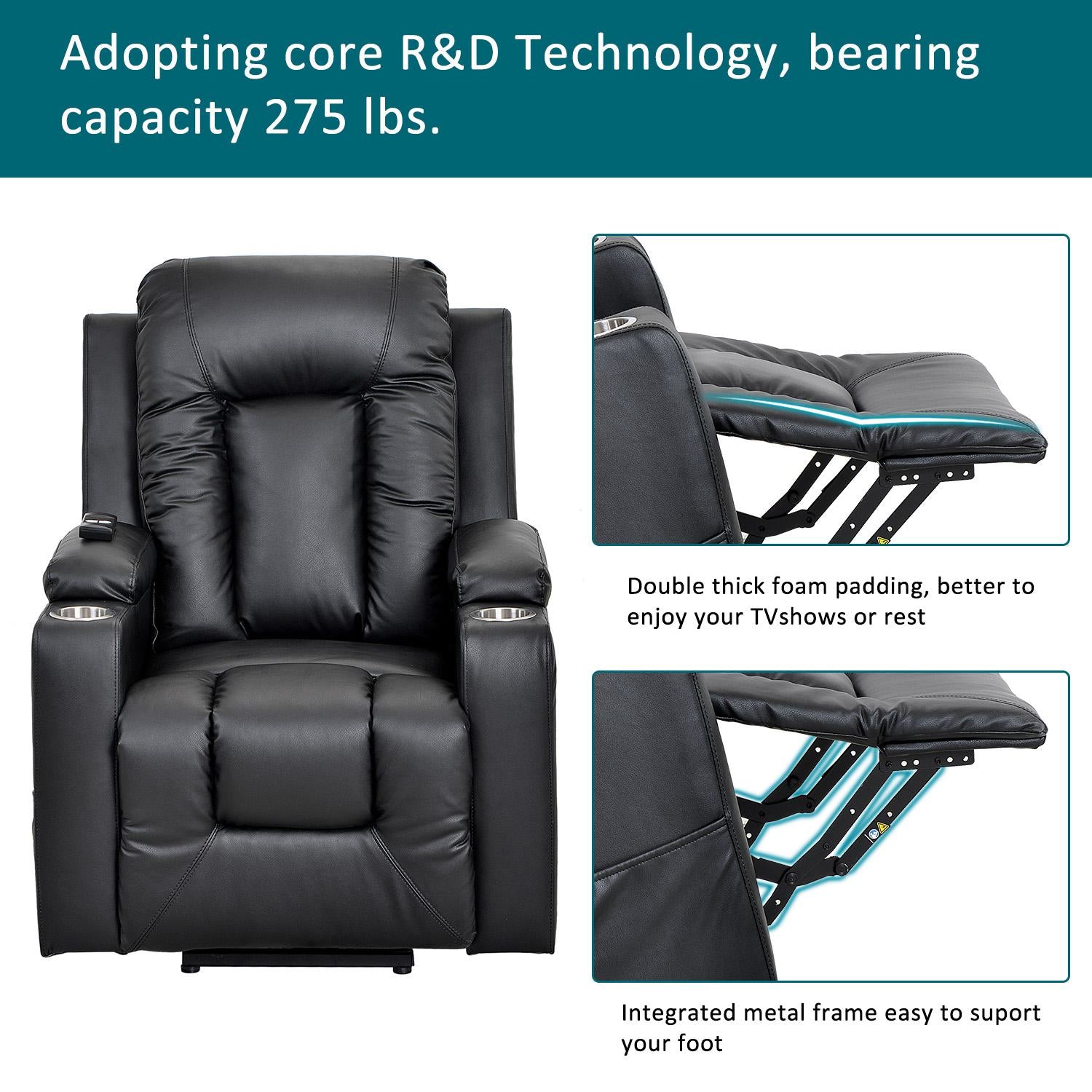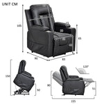Experience ultimate comfort with our Electric Power Lift Recliner Chair Sofa, designed specifically for the elderly. This stylish chair in black faux leather features a TUV certified lift motor, allowing for easy transitions between sitting and standing positions, reducing strain on the back and knees. With overstuffed padding, built-in springs, and pillowtop arms, it offers exceptional comfort, while side pockets and dual cup holders provide convenience. Measuring 83L x 90W x 105H cm, this recliner is perfect for any living space, combining functionality with a sleek design.