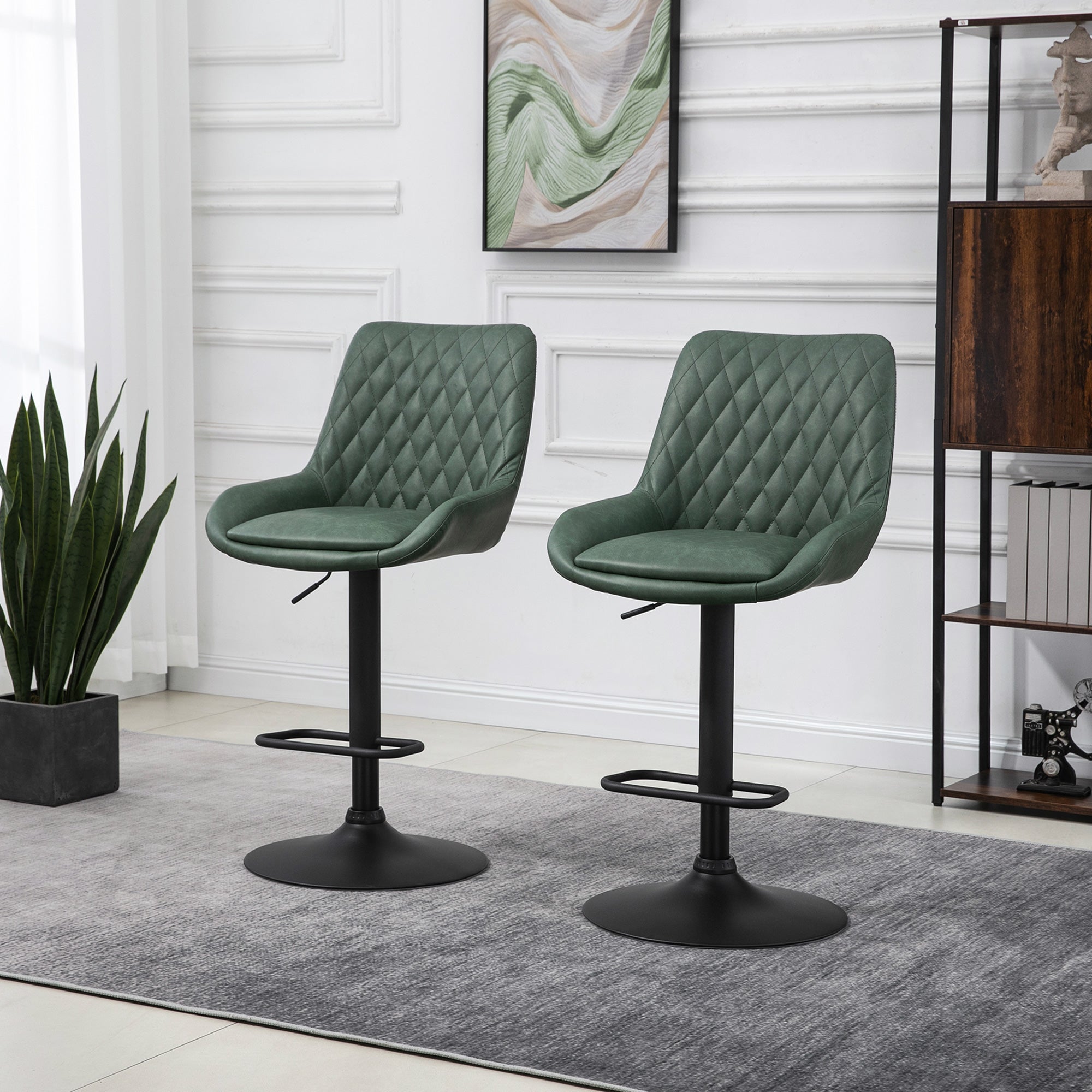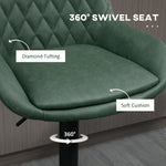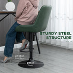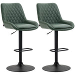 Retro Bar Stools Set of 2, Adjustable Kitchen Stool, Upholstered Bar Chairs with Back, Swivel Seat, Green