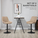 Retro Bar Stools Set of 2, Adjustable Kitchen Stool, Upholstered Bar Chairs with Back, Swivel Seat, Light Khaki