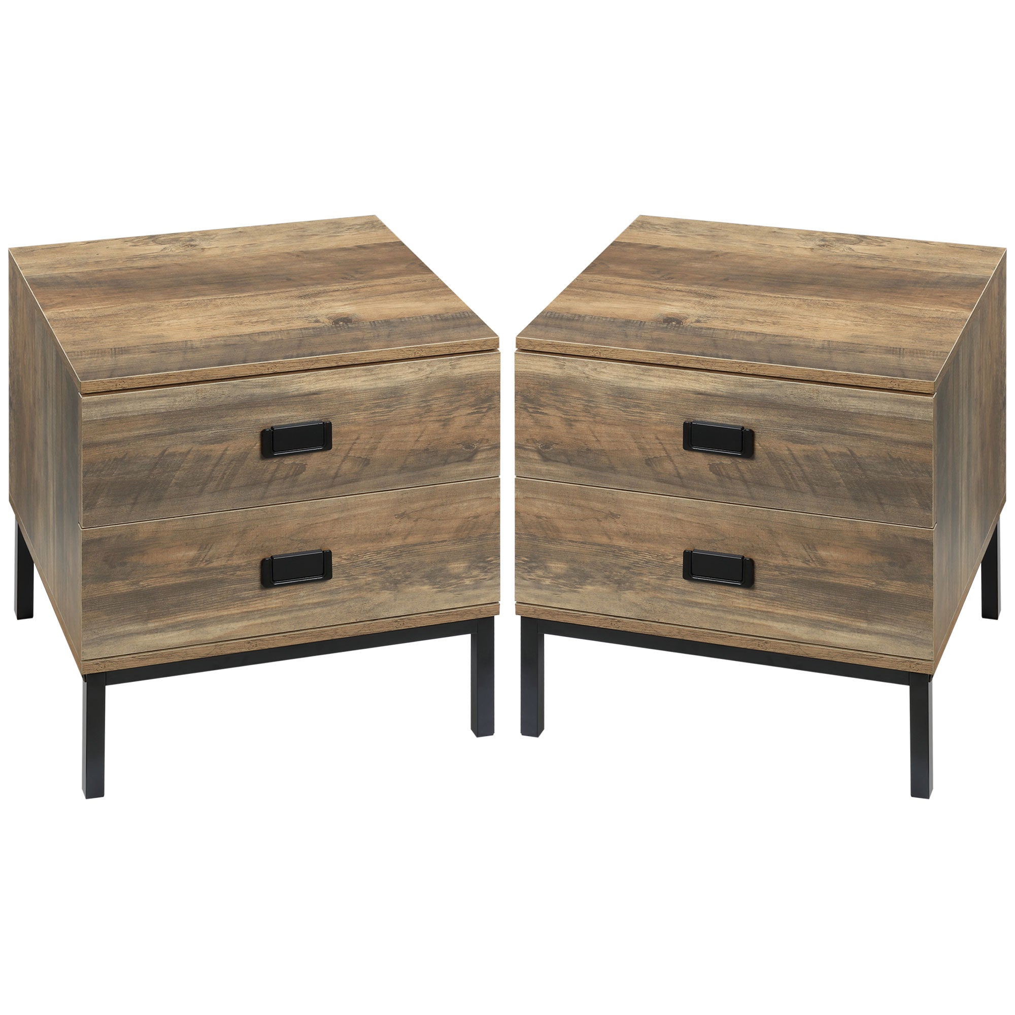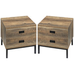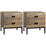 Retro Bedside Table, End Side Table with 2 Drawers, Metal Frame for Bedroom, Living Room, Set of 2, Coffee
