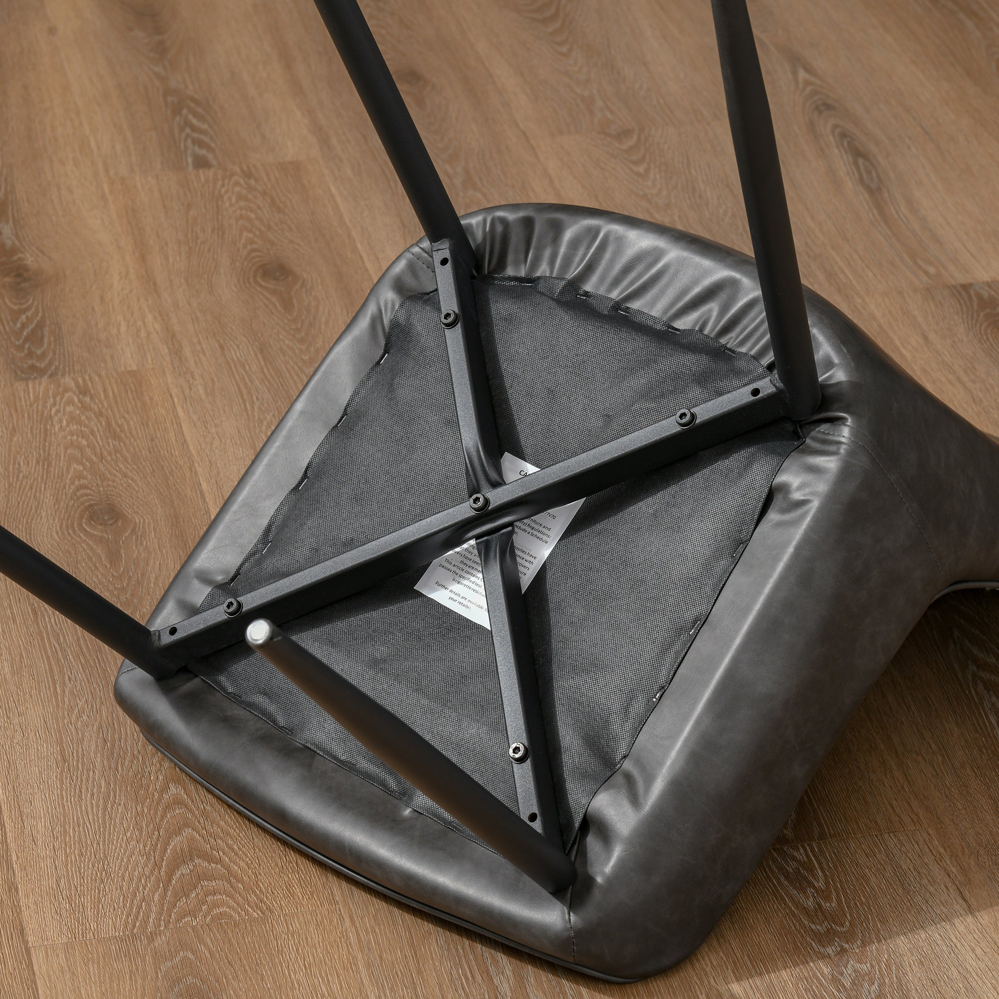 Retro Dining Chair Set of 4, PU Leather Upholstered Side Chairs for Kitchen Living Room with Metal Legs, Grey
