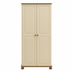 In an attractive cream MDF and pine, this is a large bedroom wardrobe with a stylish door design with plenty of storage space. Offering spacious hanging room and includes a fitted shelf for extra interior storage. An added touch is the special adjustable hinges we use on all wardrobe doors to offset any problem with uneven floors.