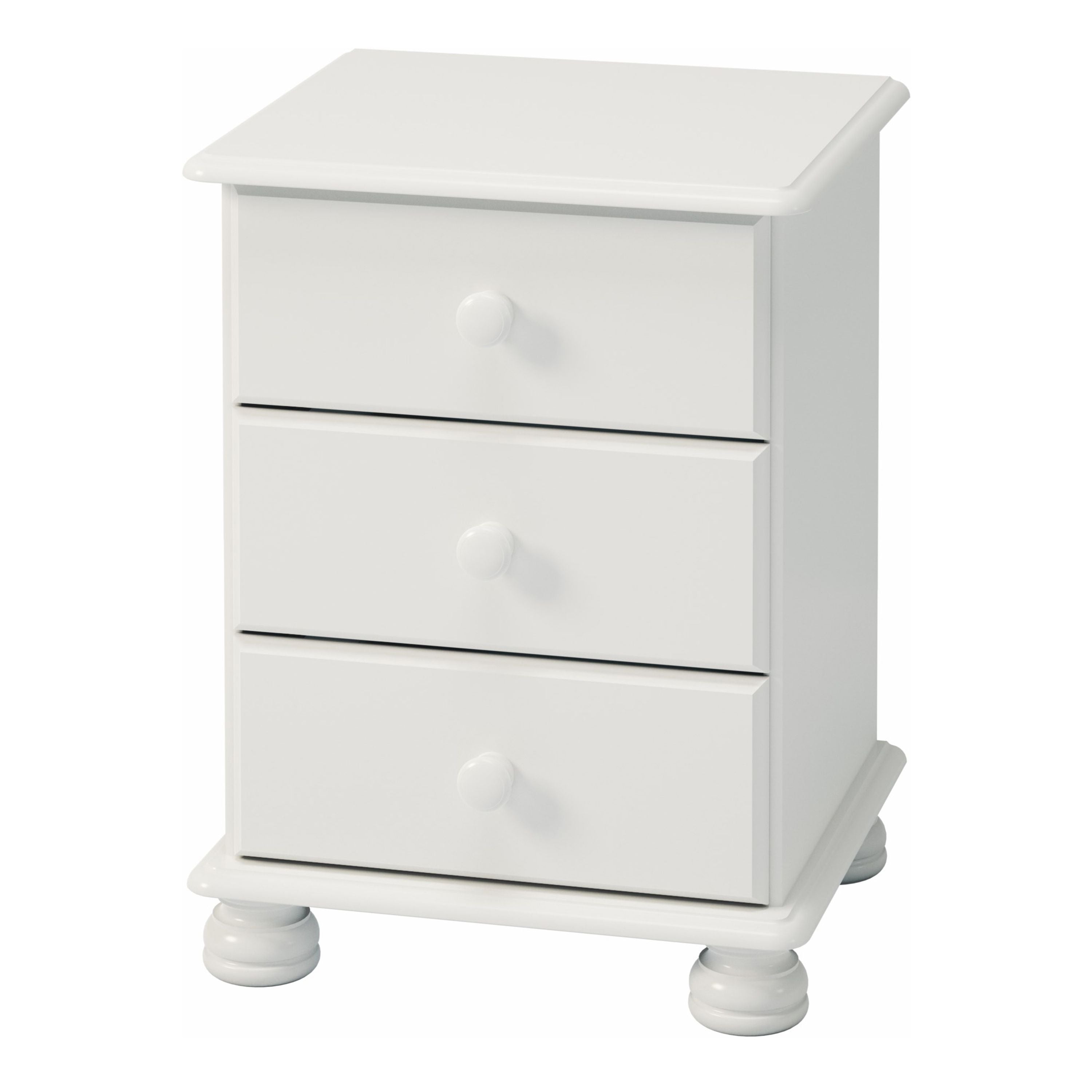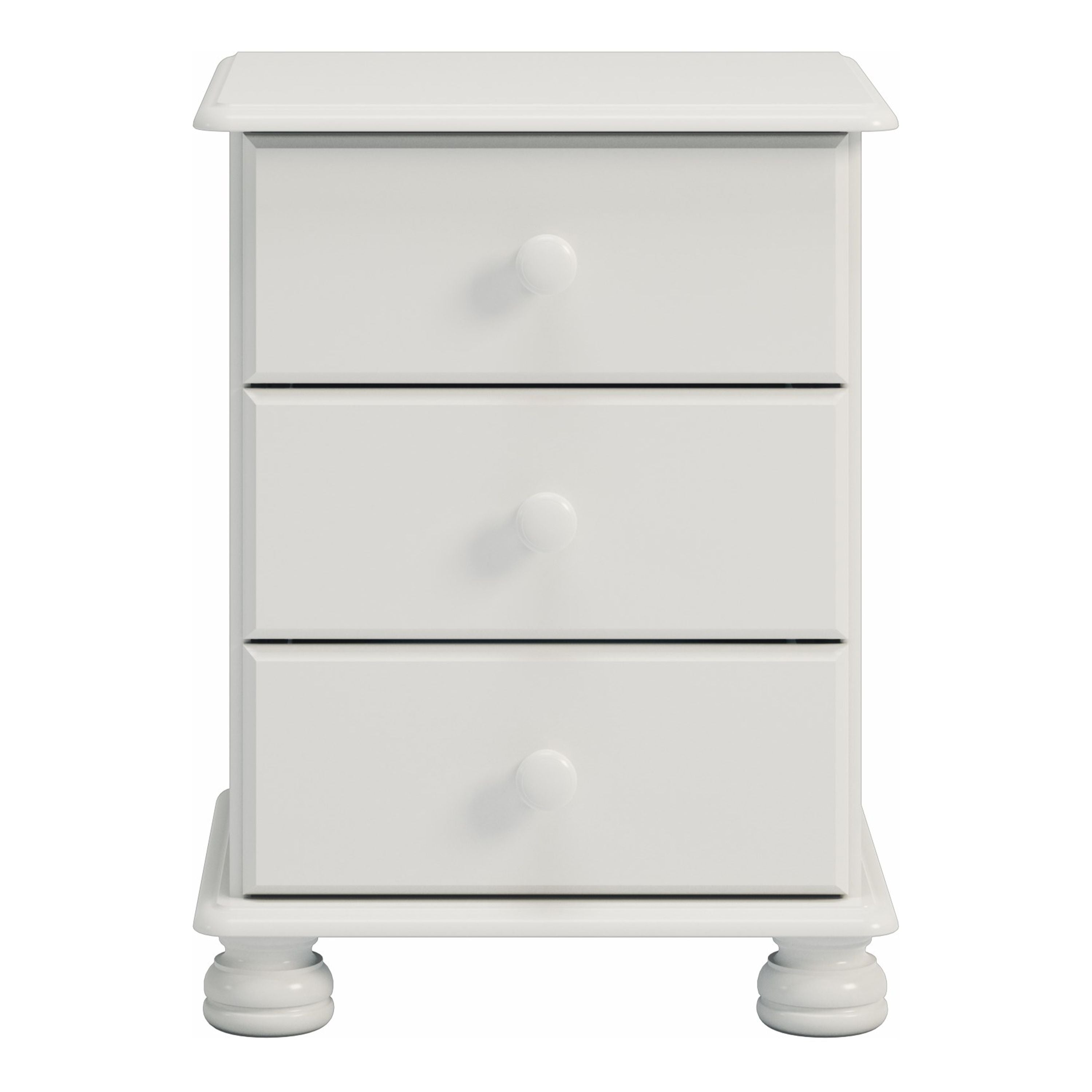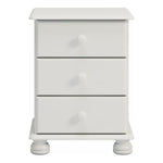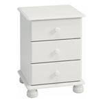 3 drawer bedside in attractive off white MDF is an elegantly designed storage solution. It will comfortably hold a lamp, alarm clock and your favourite book or kindle on top and there is ample storage in the 3 drawers. All drawers are on easy glide runners with cam lok system on fronts. Modern design in solid white MDF finished with a smooth lacquer, makes this an attractive choice for any bedroom.