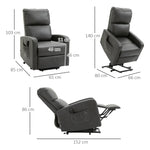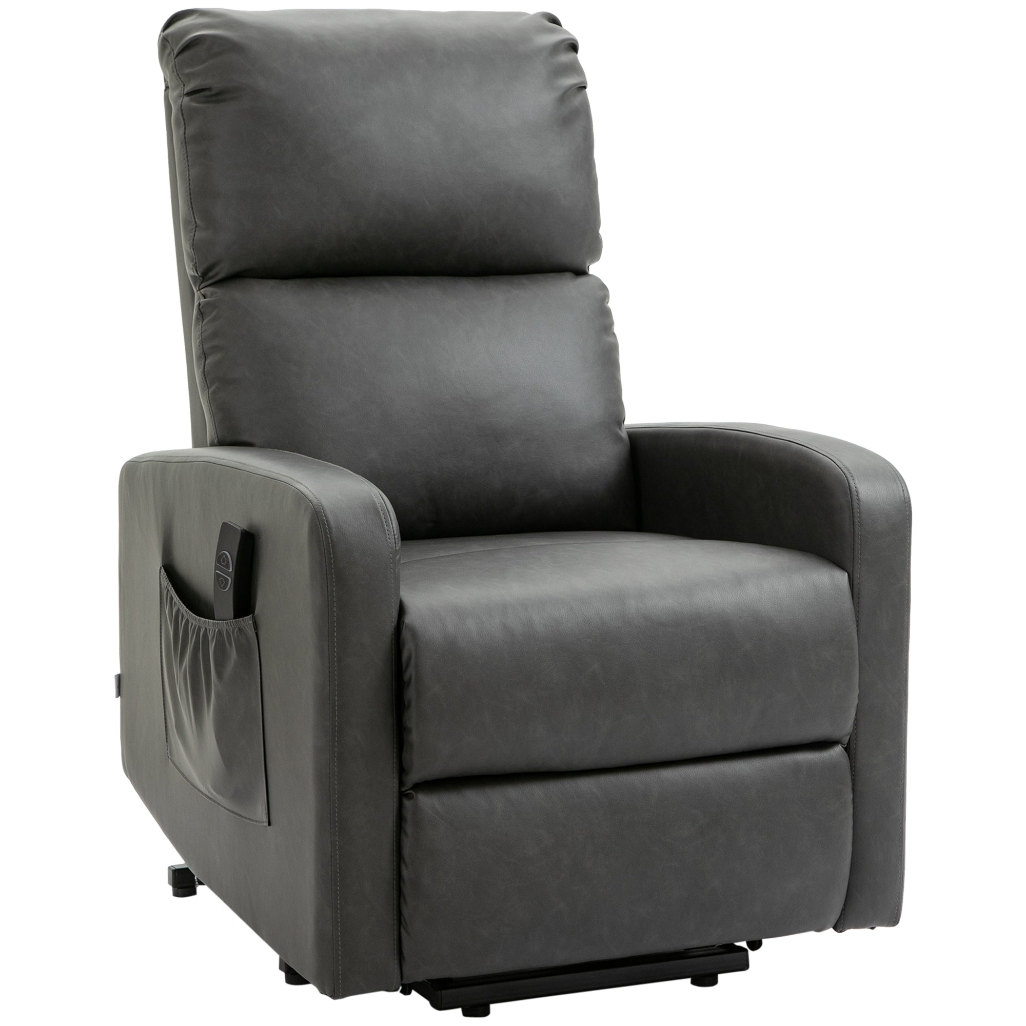 Riser and Recliner Chair for the Elderly, PU Leather Upholstered Lift Chair for Living Room with Remote Control, Side Pockets, Charcoal Grey