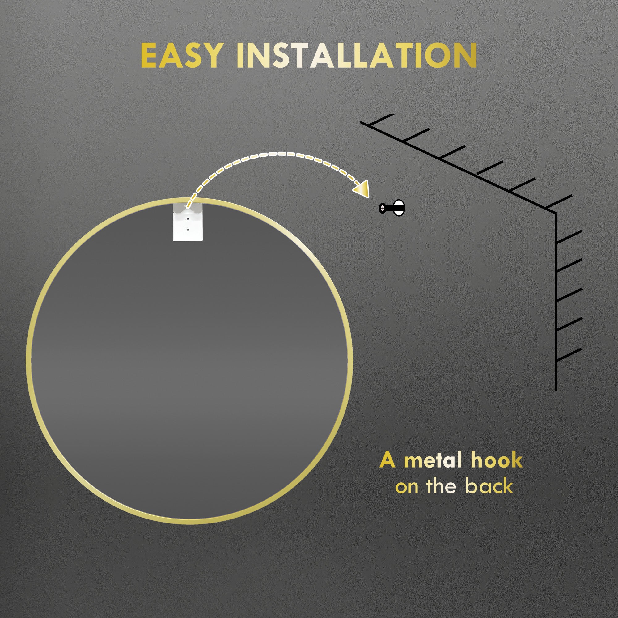 70cm Aluminium Frame Round Bathroom Mirror - Gold Tone