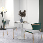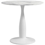 Small 2-Person Dining Table, Elegant Design Table with Steel Base and Non-slip Foot Pad, White and Grey