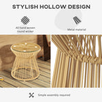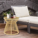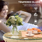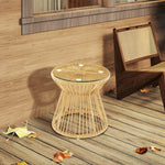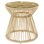 Round End Table, Rattan Side Table, Hollow Drum Design Coffee Table w/ Glass Tabletop for Patio, Garden, Balcony Natural