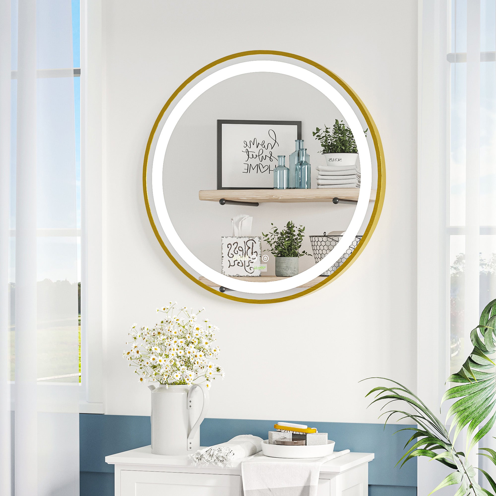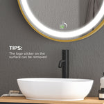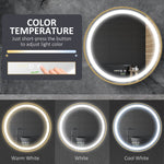 Round LED Bathroom Mirror, Dimmable Lighted Wall Mount Mirror with 3 Colours, Time Display, Memory Function, Hardwired