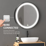 Round LED Bathroom Mirror, Dimmable Lighted Wall-Mounted Mirror with 3 Temperature Colours, Memory Function, Hardwired