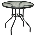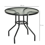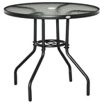Outdoor Ï80cm Round Dining Table Tempered Glass Top Steel Frame Bistro Coffee End Side Table Garden w/ Parasol Hole
