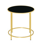 Enjoy this beautiful round side table from during your chat party or afternoon tea! The simple and fashionable design with a metal base with luxry gold color process and tabletop with black tempered glass give you an unforgettable visual enjoyment. This side table can be use as bed stand, sofa side table, coffee table, a great addition in your living room, bedroom, dining room. A functional and stylish table set adds simple happiness to your home!