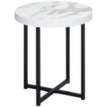 Round Side Table with Metal Legs, Modern End Table Bedside Table for Living Room, Bedroom, White