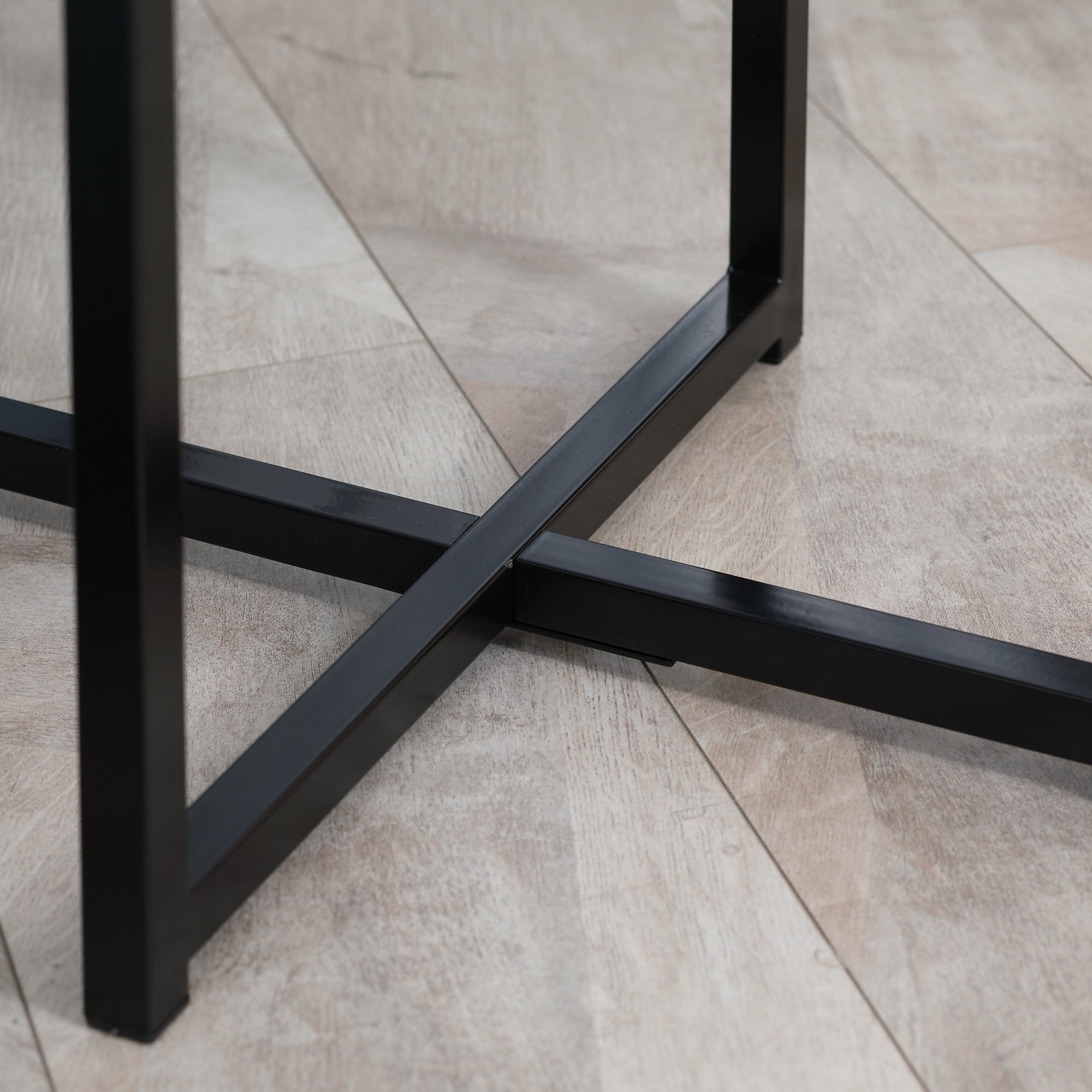 Modern marble for your home - this small table. The table top is made from MDF for durability with the two-tone design bringing a touch of elegance into your home. The frame is made from metal for strength, with 'X' shaped legs for plenty of support and balance. The flat table top gives plenty of room for what you need close by.