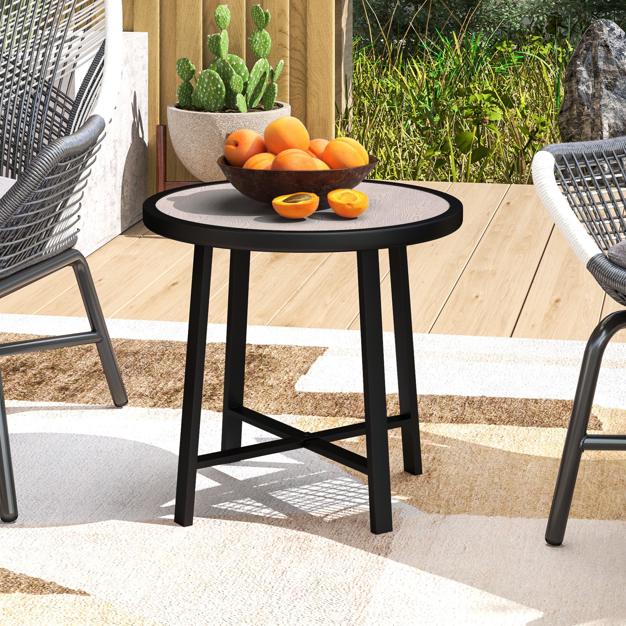 Round Small Garden Table, 50.5cm Outdoor Side Table with SPC Tabletop, Metal Frame and Anti-slip Foot Pads for Garden, Balcony, Grey Wood Effect