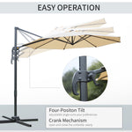 Round Umbrella Parasol W/ Tilt 360° Rotation and Hand Crank Cross Base-Beige