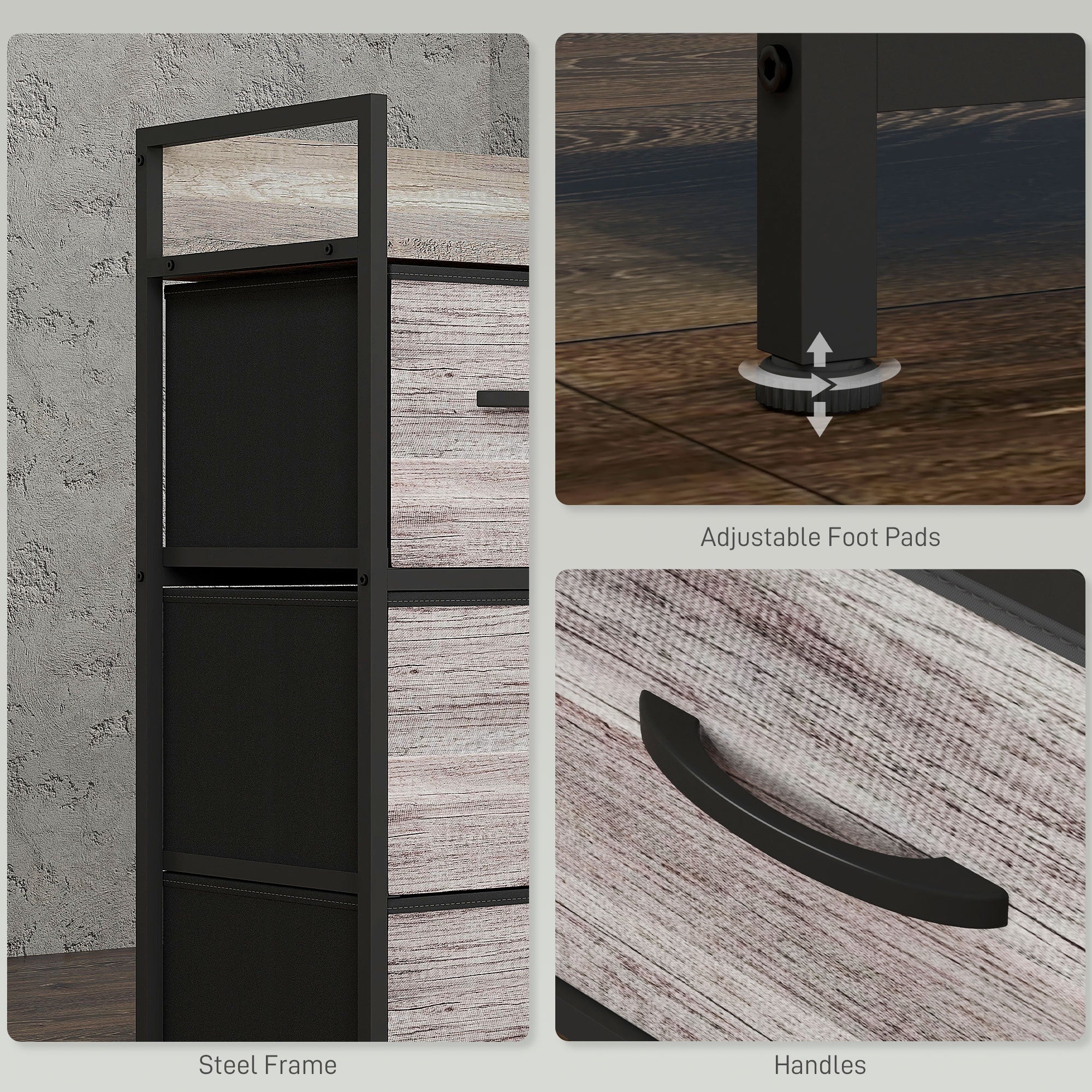 A spacious and simple approach to clothes storage, with this chest of drawers. It comes in industrial and rustic wood-effect design, a minimal and versatile look: it's great for plenty of different interior styles. This dresser comes with four drawers for storing and organising various garments. A powder coated steel frame for a strong core, finished with adjustable feet for balance.