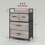 Rustic Chest of Four Fabric Drawers - Grey Wood Effect