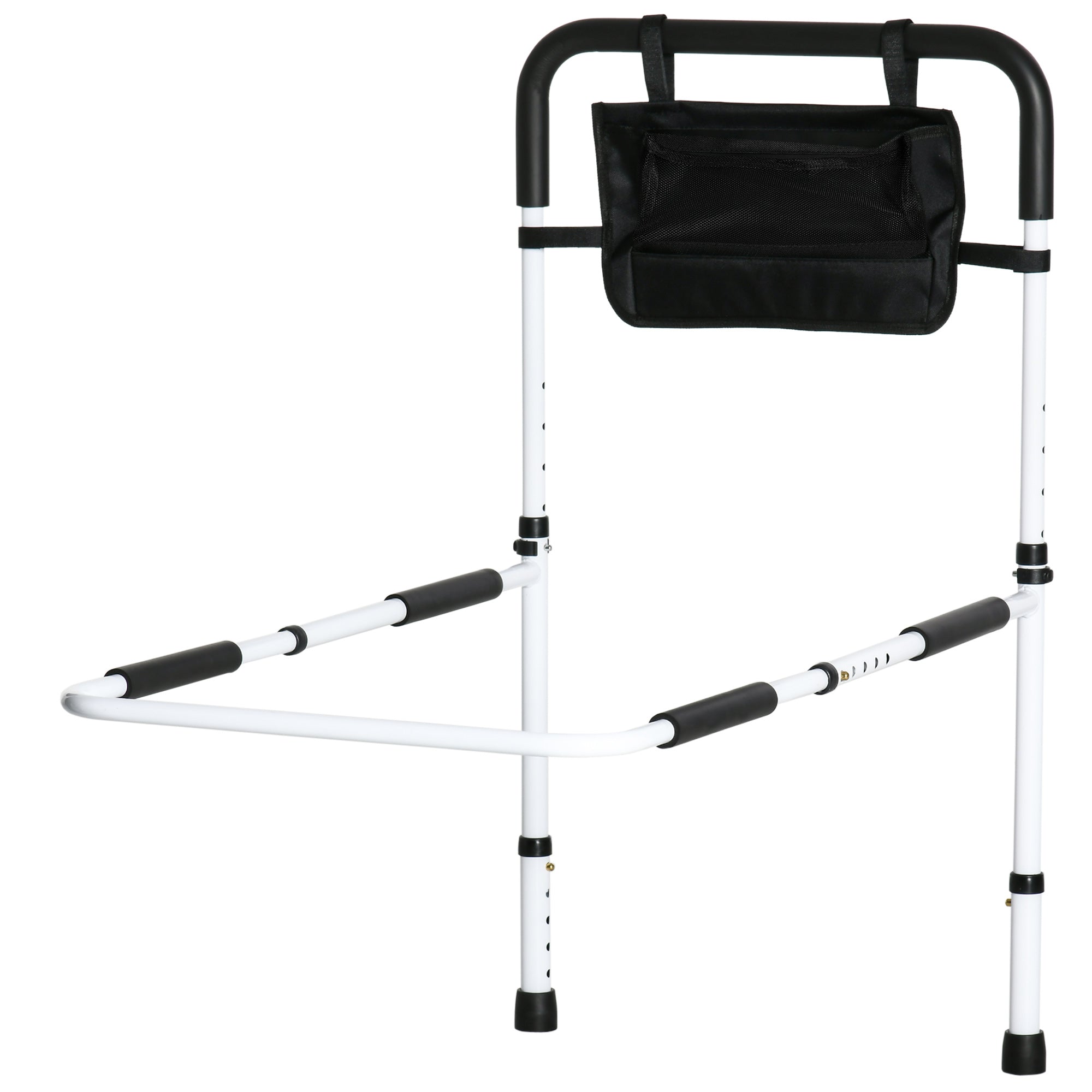Safety Bed Rail, Height Adjustable Bed Assist Rail with Storage Pocket, Grab Bar for Disabled and Senior, White