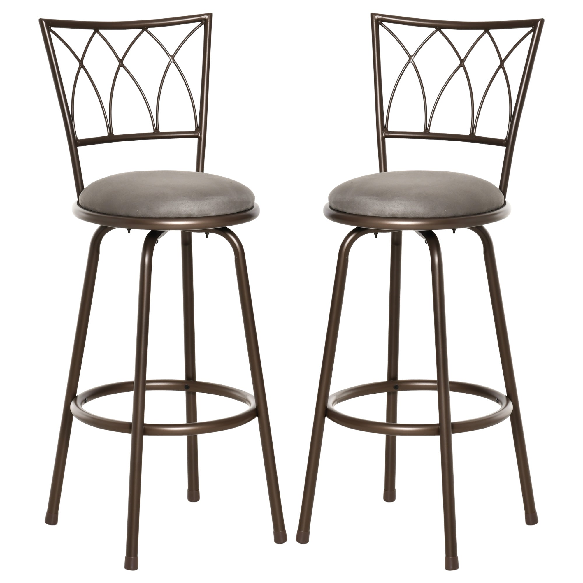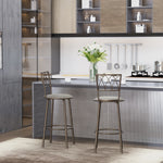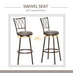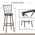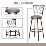 Set of 2 Bar Chairs Swivel Armless Upholstered Metal Frame Barstools with Backrest & Footrest, Bronze