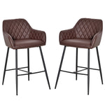 Set of 2 Bar stools Retro PU Leather Bar Chairs w/ Footrest Metal Frame Comfort Support Stylish Dining Seating Home Brown