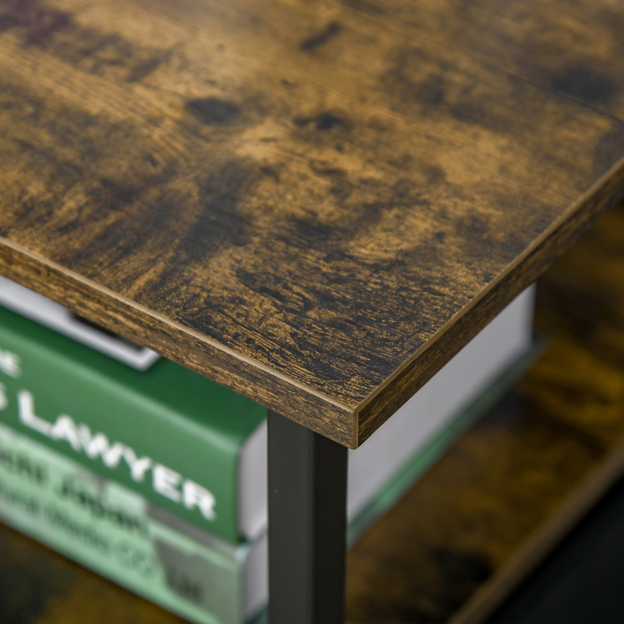 Particle board shelves are stable and metal frame for extra strength