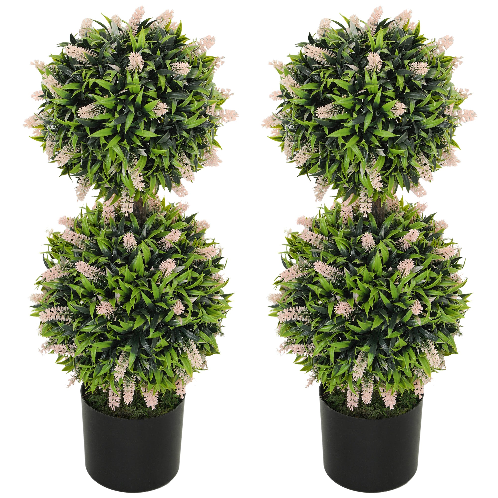 Set of 2 Decorative Artificial Plants Ball Trees with Lavender Flowers in Pot Fake Plants for Home Indoor Outdoor Decor, 70cm, Pink