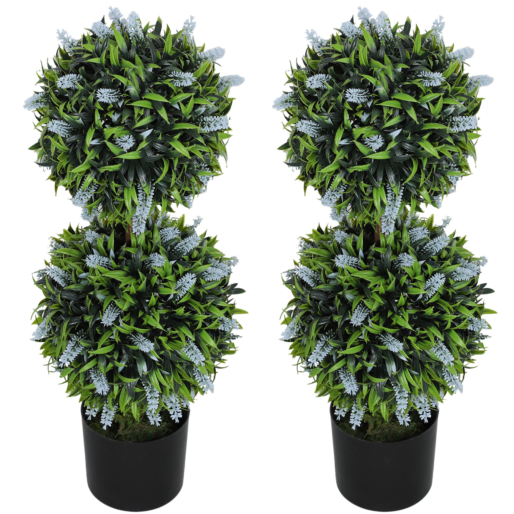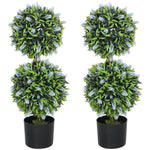 Set of 2 Decorative Artificial Plants Ball Trees with Lavender Flowers in Pot Fake Plants for Home Indoor Outdoor Decor, 70cm, Blue