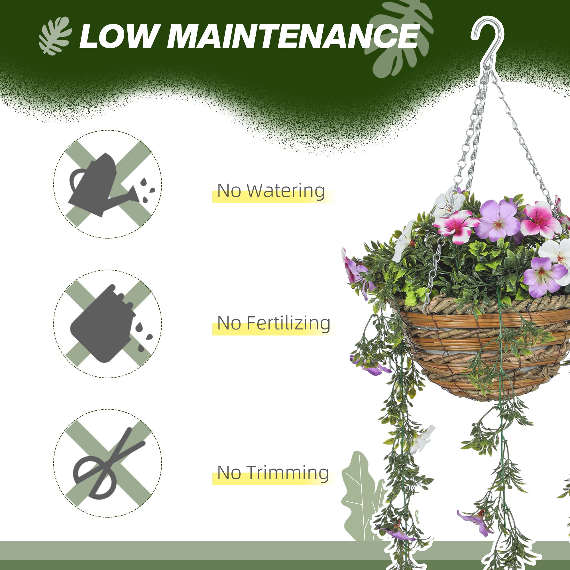 Transform your space with the two set of hanging baskets azalea flowers. These artificial plants boast UV protection for both indoor and outdoor charm, their natural texture delivers an astonishingly realistic look. Enjoy the beauty of fake plants year-round without the fuss, all while enhancing your decor with their evergreen elegance. Great for those who appreciate low-maintenance yet stylish accents.