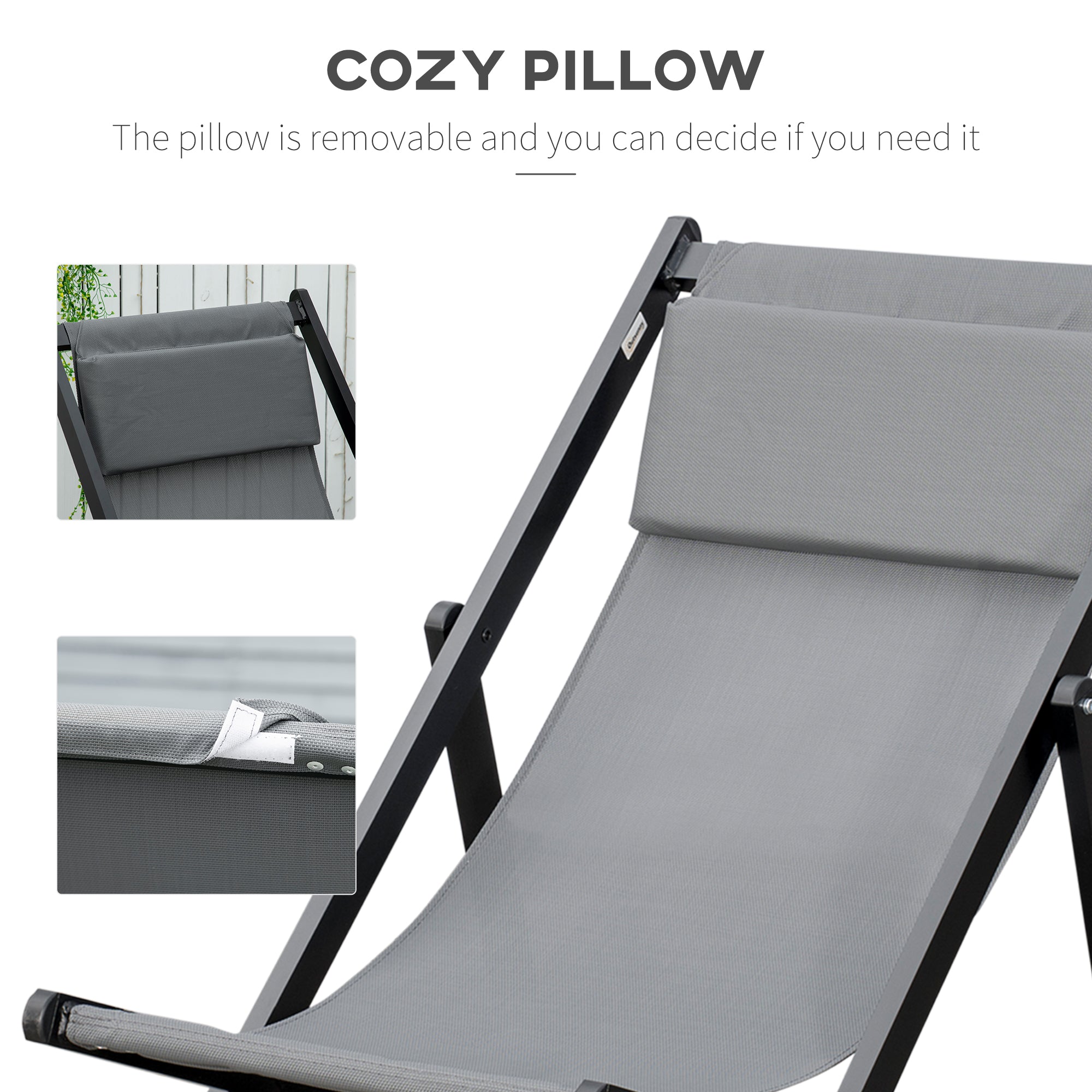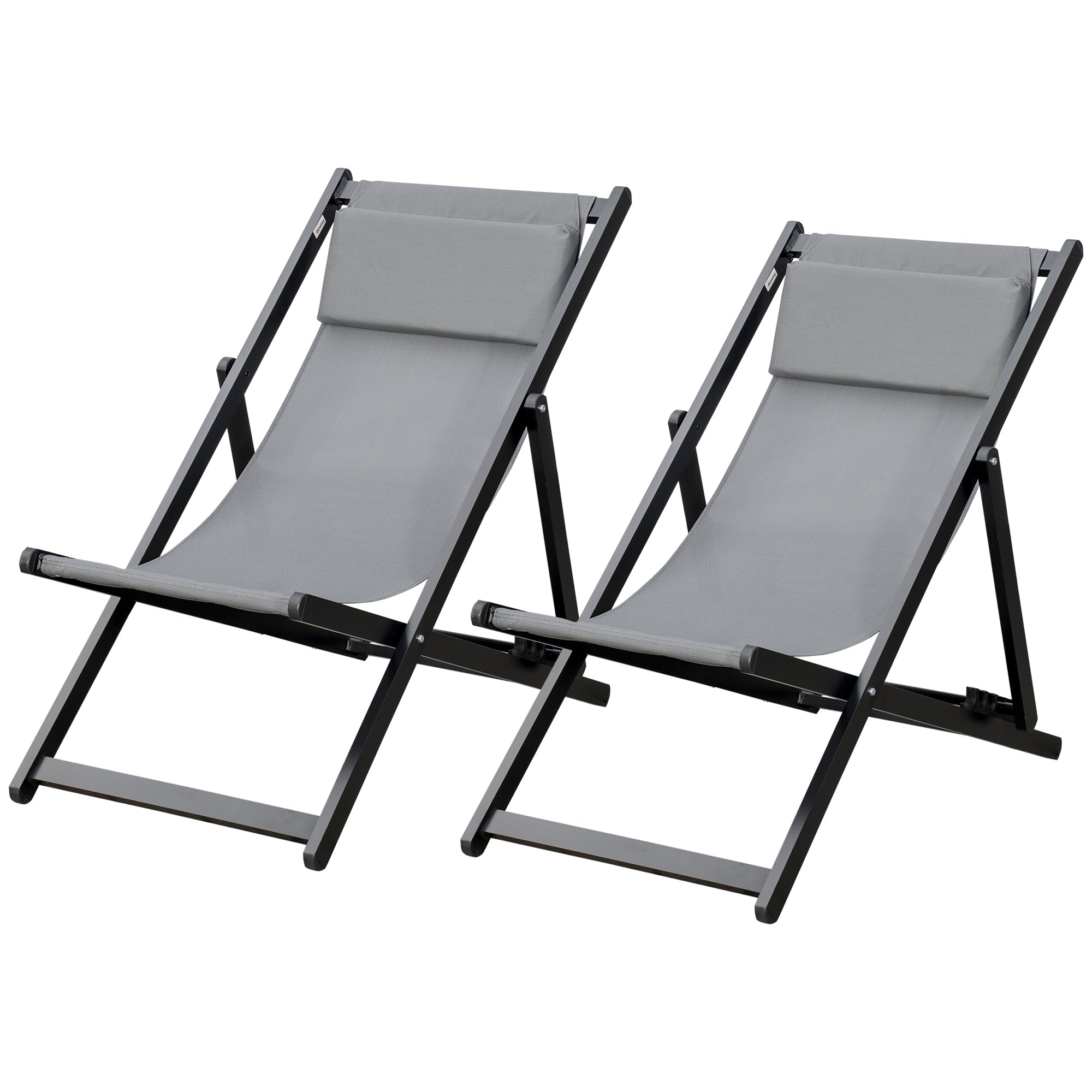 Set of 2 Folding Garden Beach Aluminium Frame Deck Chairs Deckchairs Seaside Folding Garden Patio Lounger, Grey