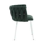 Elevate your dining experience with the Modern Hand Weaving Dining Chairs, a set of two exquisitely crafted pieces. Each chair features a hand-woven backrest, adding a touch of artistry and ensuring a comfortable seating position. The high-density cushions provide exceptional support, while the adjustable anti-slip pads on the silver metal legs ensure stability and protect your floors. Perfect for any dining room, these chairs combine style, comfort, and practicality, making them a standout addition to your home.