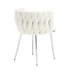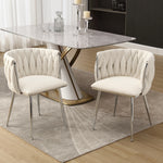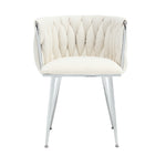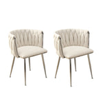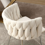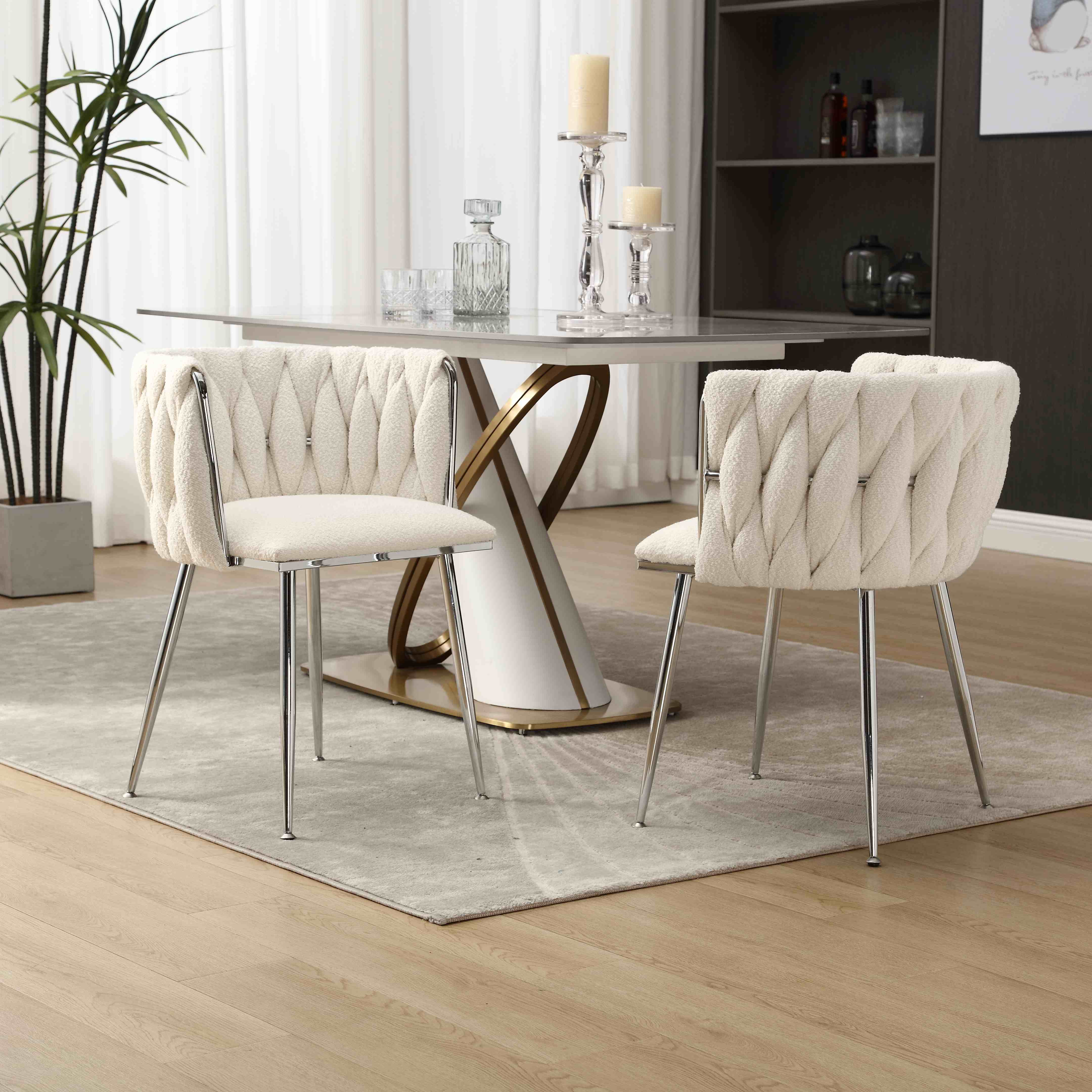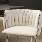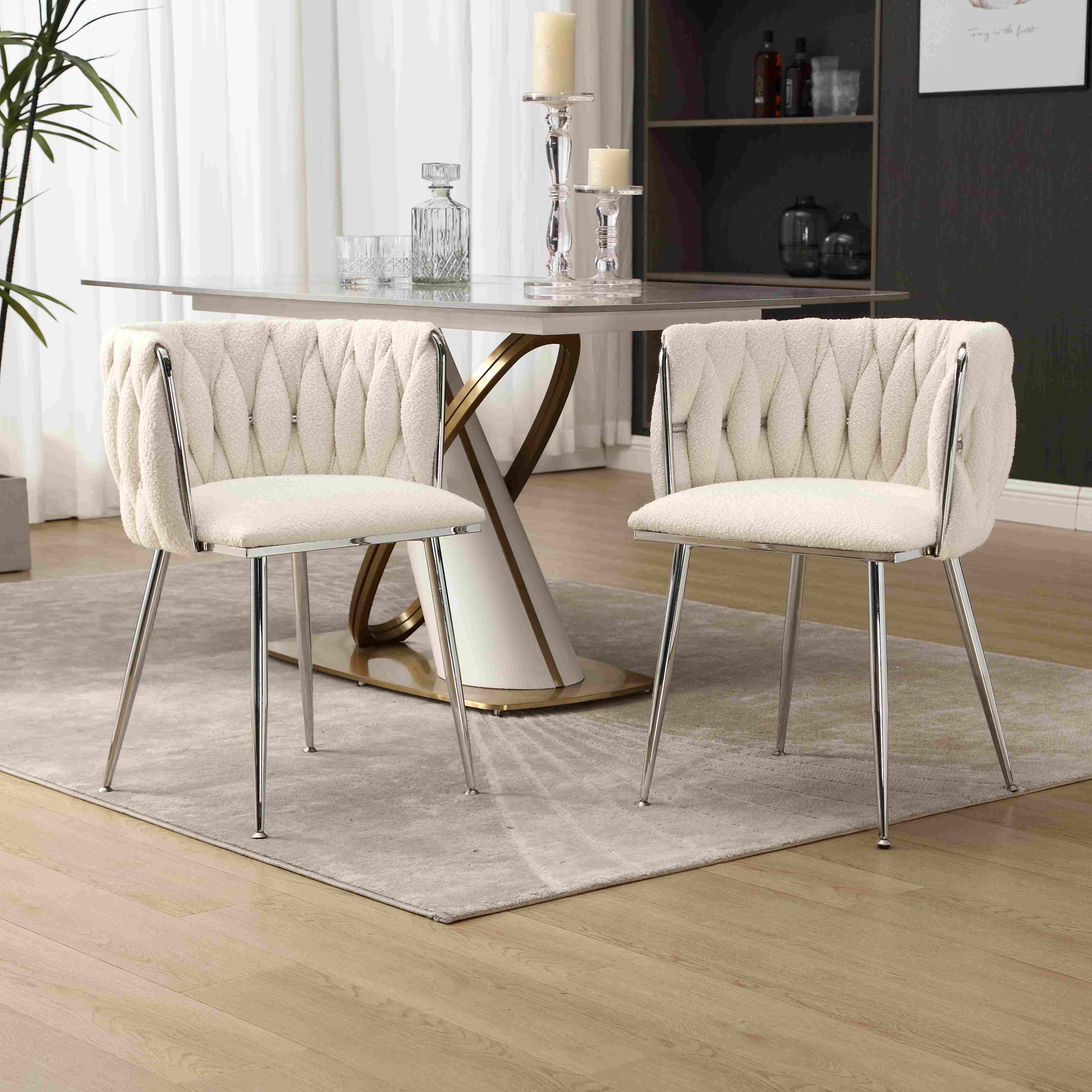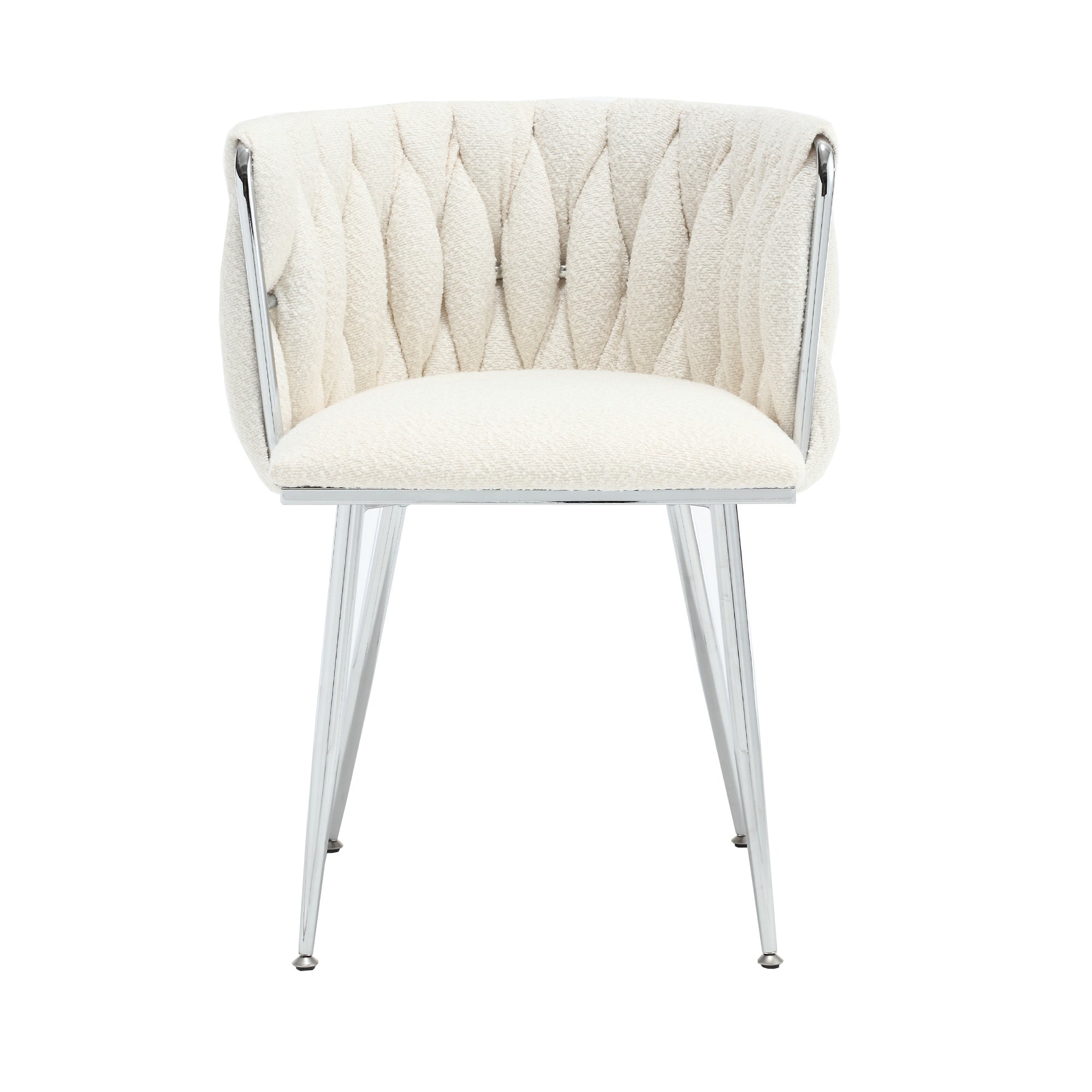 Set of 2 Modern Hand Weaving Dining Chairs with Silver Legs and Armrests, Boucle Upholstered Side Chairs, Set of 2 Dining Chair for Living Room, 54x52x73 cm, Ivory