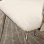 - Material: Boucle fabric upholstery, Solid and Plywood frame, Metal legs