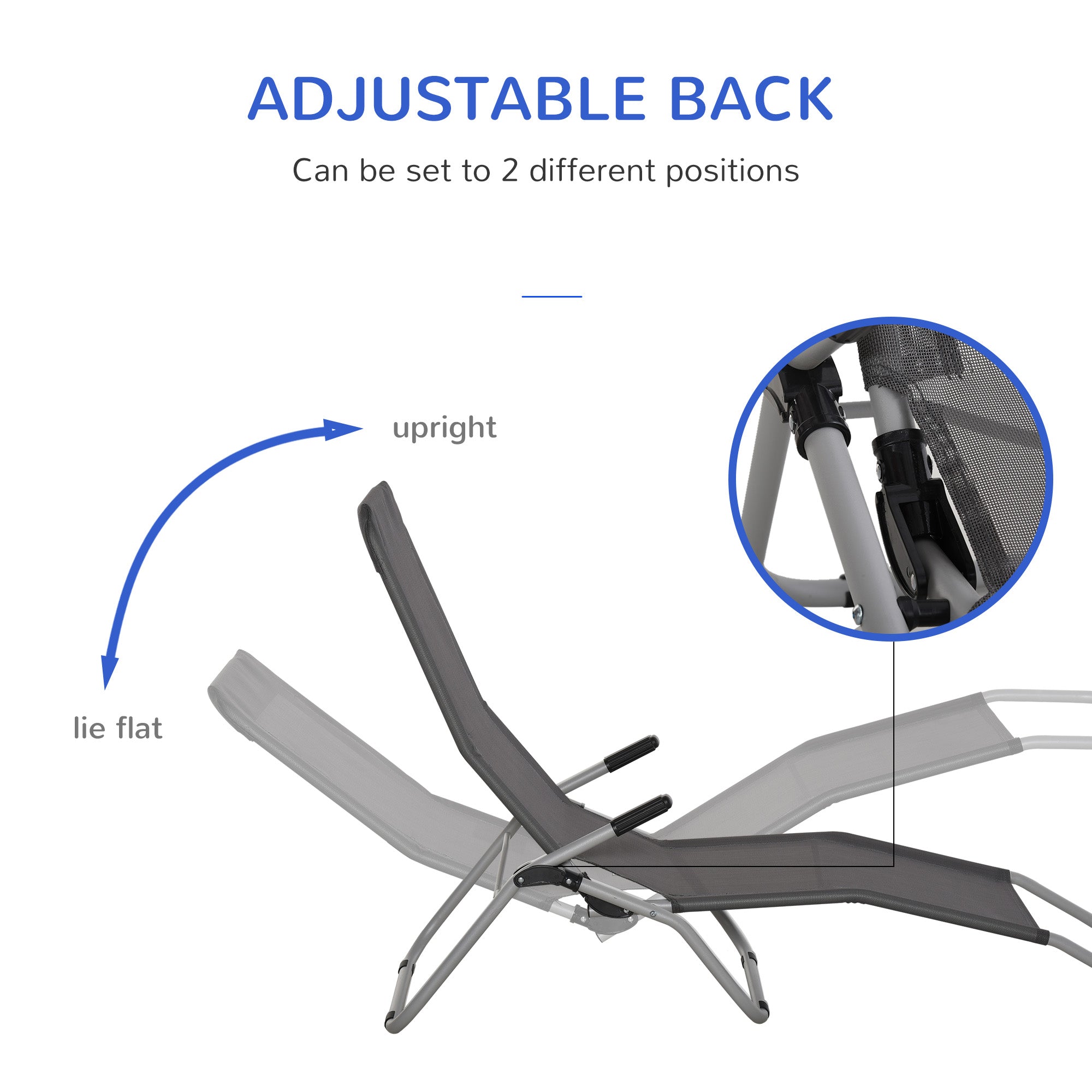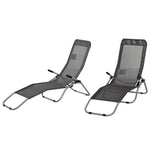 Let stress drift away with these sun loungers. Comes in a set of two - meaning you'll have space for a friend to relax with if ever wanted. The back can beset to 2 different positions - lie upright or flat., making it comfortable for you. The weather-resistant texteline seat holds your body on the seat comfortably. When finished with this, you can fold it to carry and store it easily. Suitable for the garden, park, camping, festivals, sports matches and much, much more.